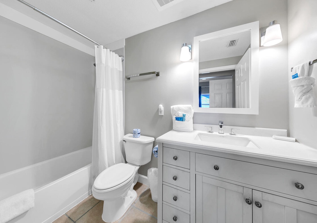 Seychelles 1504 is a spacious 1-bedroom, 2-bath condo located in Panama City Beach! This beachfront condo sleeps up to 6 guests with a king in the master bedroom, twin bunkbed in the hallway, and a queen sofa sleeper in the living room. With two bathrooms, there is enough room for everyone to vacation comfortably. The bright white kitchen features stainless steel appliances and gorgeous countertops. There is also a washer/dryer in the unit for additional convenience. Seychelles has two beachfront pools for you to relax by as an alternative to the sandy shore. Keep your fitness goals intact with a trip to the on-site fitness room at the resort. Plan your next vacation at Seychelles 1504!