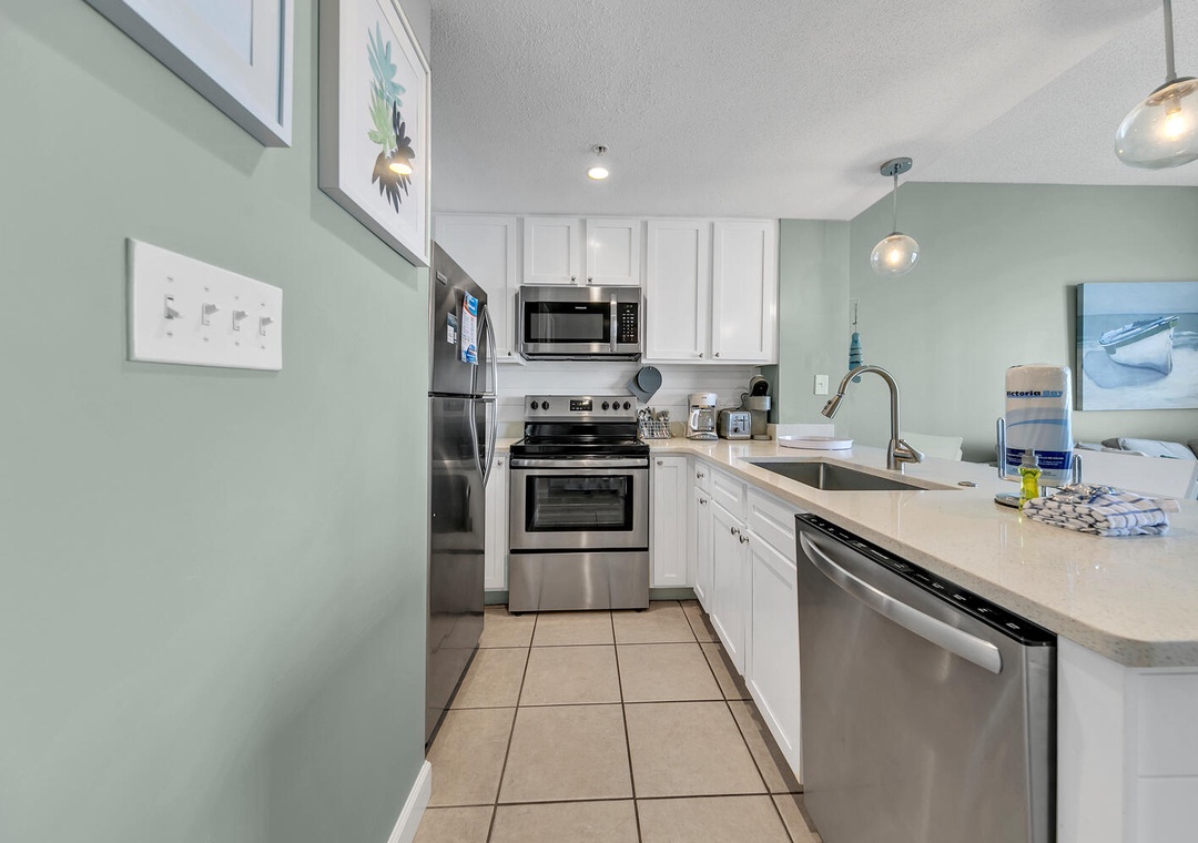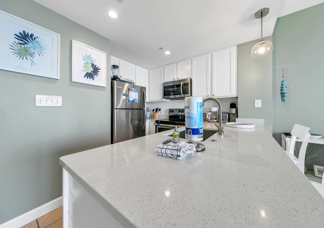 Hi there, thanks for your feedback on Seychelles 1504! We're so happy to hear you thought the condo was beautiful, clean and well appointed. We're also glad you found nice food and shopping within walking distance. We appreciate you booking with RealJoy and hope to see you and your family again in the future!Real Joy staff