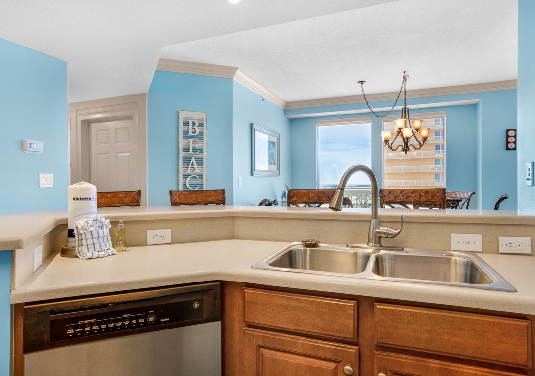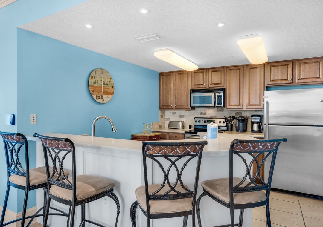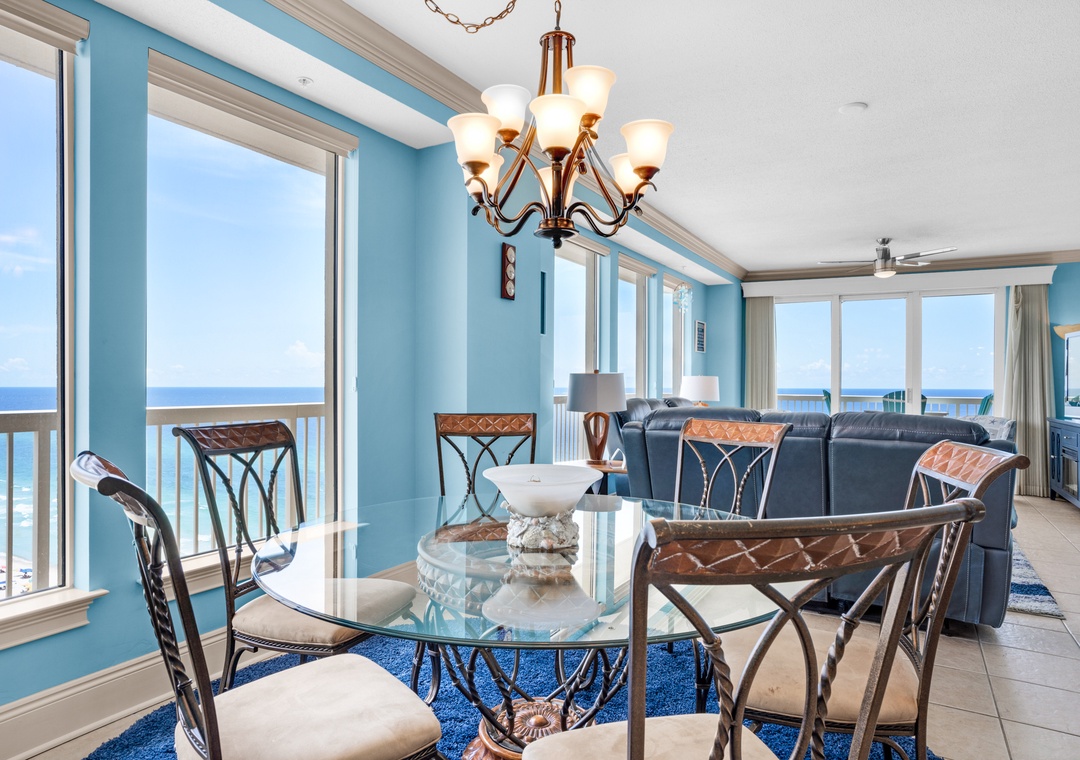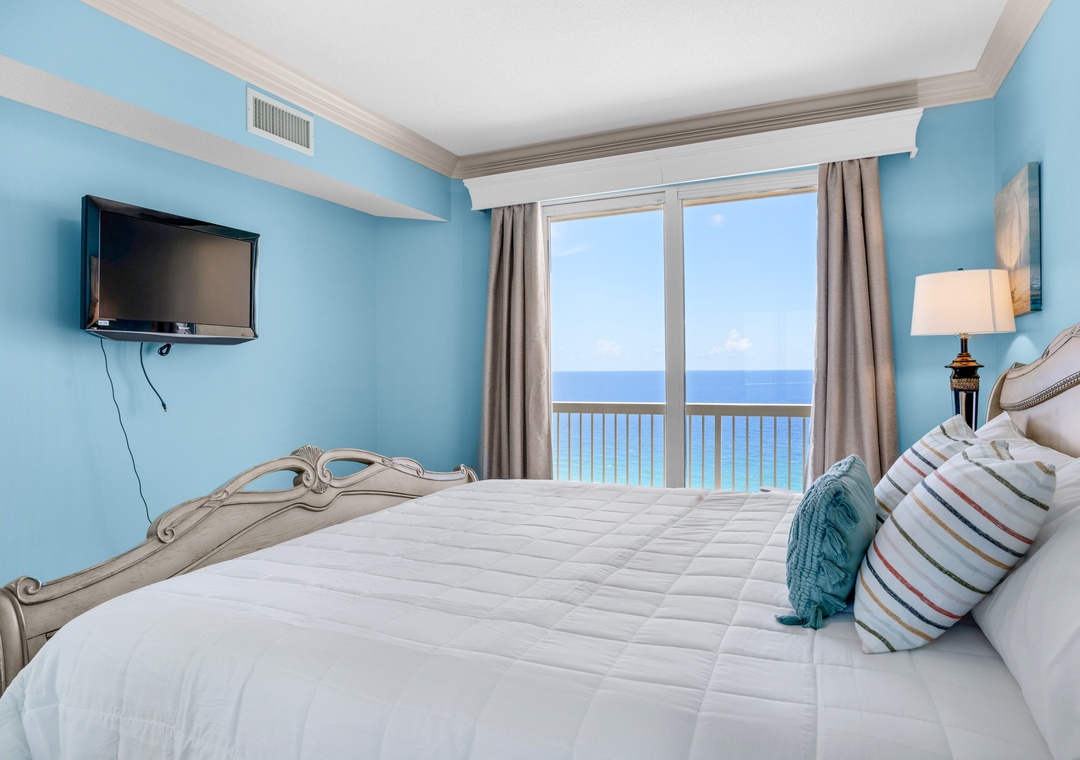 Welcome to Seychelles 1601, a gorgeous 3-bed 2-bath condo with sweeping views of the Gulf of Mexico from its private wrap-around balcony! This spectacular corner condo features a large master with a king and en suite, which has a walk-in shower and soaker tub. The second bedroom features a king bed with access to the balcony, and the third bedroom offers a bunk bed with a trundle. Sleeping up to 7 guests, this condo is perfect for families of all sizes. The fully equipped kitchen features stainless steel appliances and a bar to make mealtime easy. The living room has floor-to-ceiling windows to let in plenty of light and highlight the gulf views. Guests will find the convenience that 3 of the TVs have cable and a Roku stick, plus a washer and dryer in the condo. Come see why Seychelles 1601 is the perfect family getaway for you!