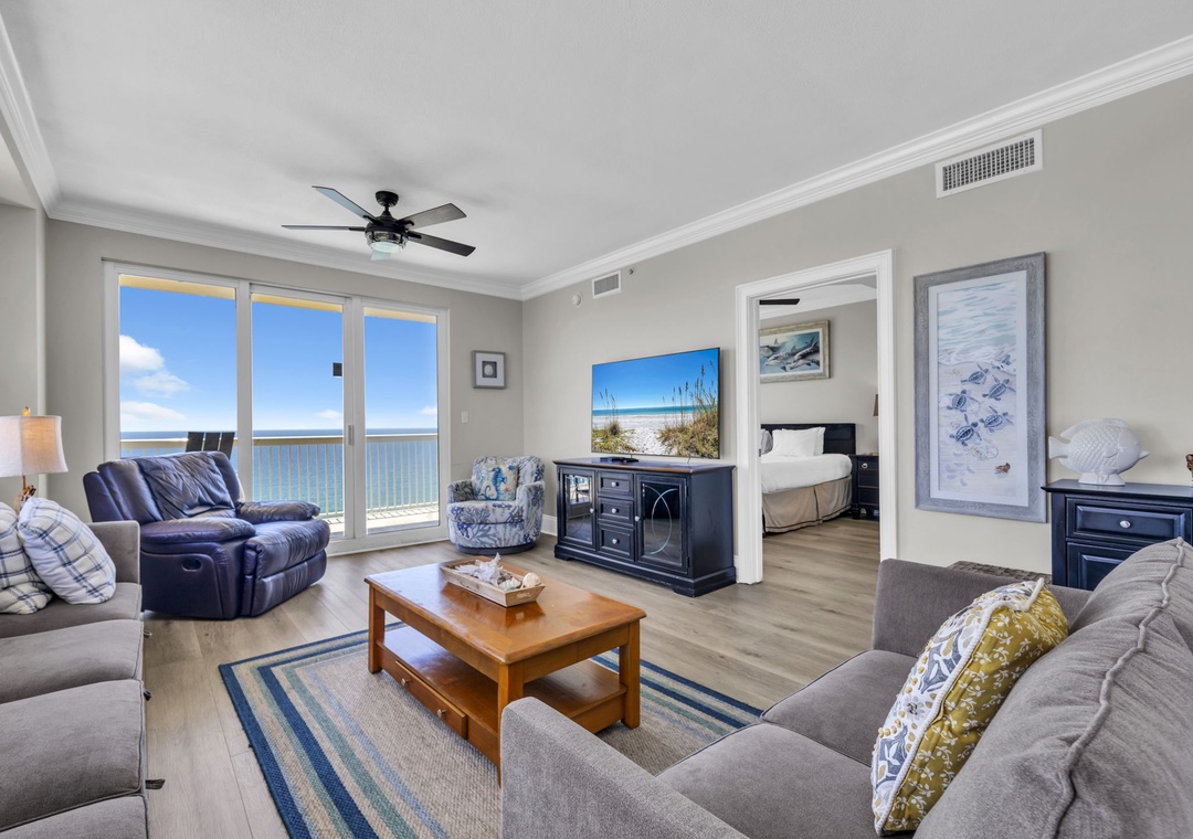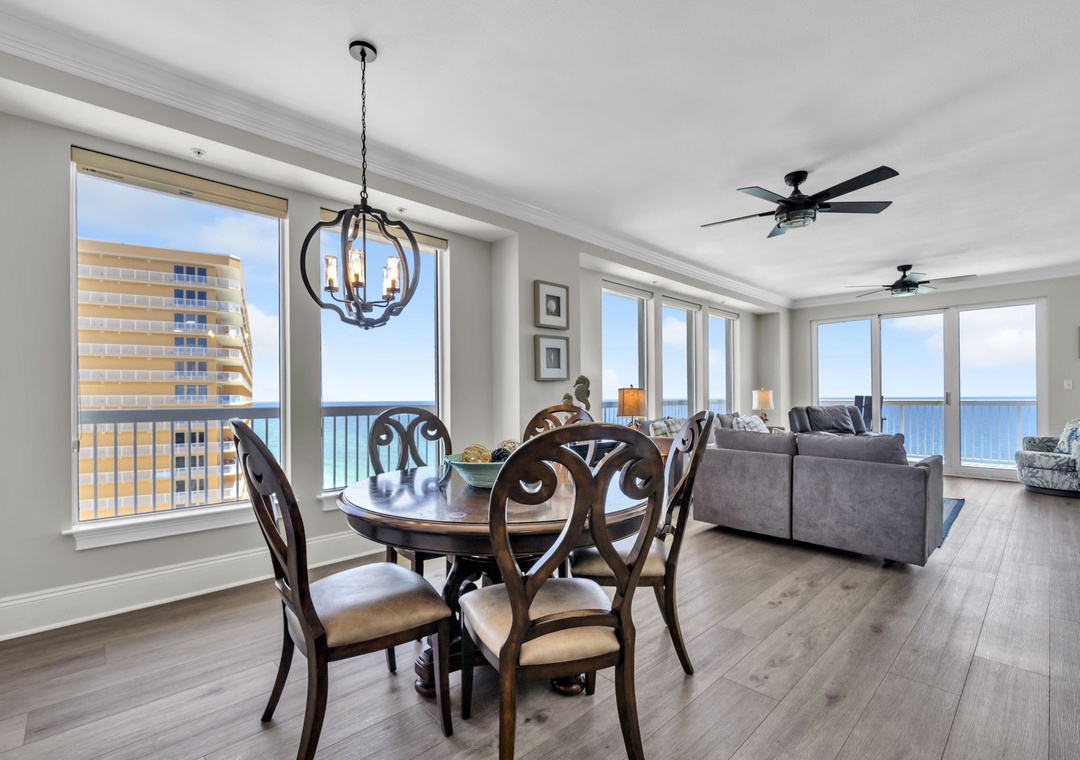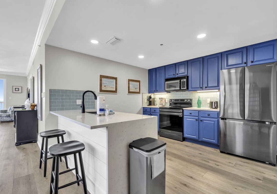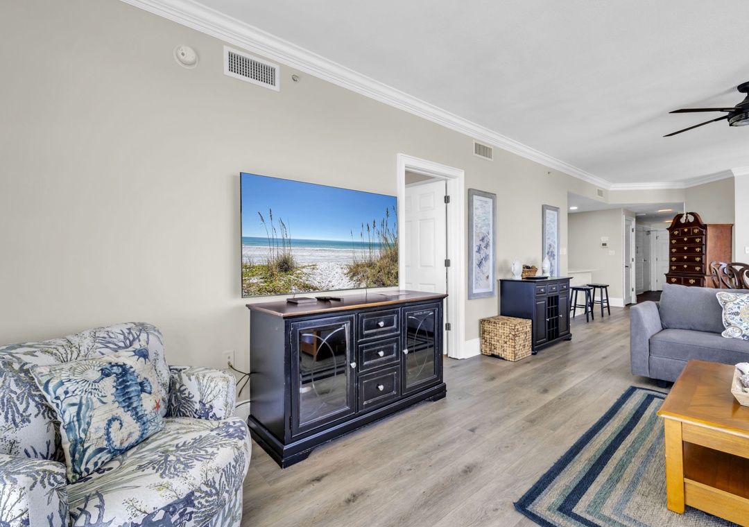 Seychelles 1701 Sandy Toes Retreat is a beautifully renovated, spacious condo ideal for families or groups seeking comfort and style during their beach getaway. With plenty of room to relax, this condo features a serene atmosphere and breathtaking views from a wrap-around balcony overlooking both the ocean and the bay. The fully equipped kitchen, complete with stainless steel appliances and a convenient breakfast bar, makes it easy to prepare everything from quick snacks to gourmet meals. Share your creations in the formal dining area, perfect for gathering and making memories. This condo comfortably sleeps up to six guests with a king-sized master suite, a guest bedroom with a double bed, and a second guest room with a queen bed. Guests also enjoy access to a seasonally heated outdoor pool, a large sundeck for soaking up the sun, and a well-equipped fitness room. Whether you’re relaxing indoors or enjoying the community amenities, Sandy Toes Retreat is your ideal home base for a fun-filled beach vacation.