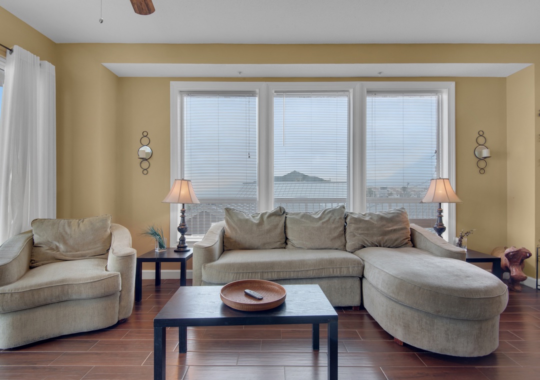Seychelles 209 is a gorgeous 3-bedroom, 2-bath condo with beautiful views of the Gulf of Mexico from its private corner balcony! This beachfront Panama City Beach vacation rental sleeps up to eight people comfortably. The master bedroom is furnished with a king bed and an attached full bath! You can step onto the balcony right from the master bedroom! The second bedroom features a king bed, and the third bedroom offers a queen bed with the guest bathroom right down the hall. In the living room, you will find a couch that converts to a sleeper sofa for extra sleeping space. Spend your mornings sitting on your corner balcony or walking the gorgeous beaches of Panama City Beach! Seychelles 209 is the perfect family getaway for you!