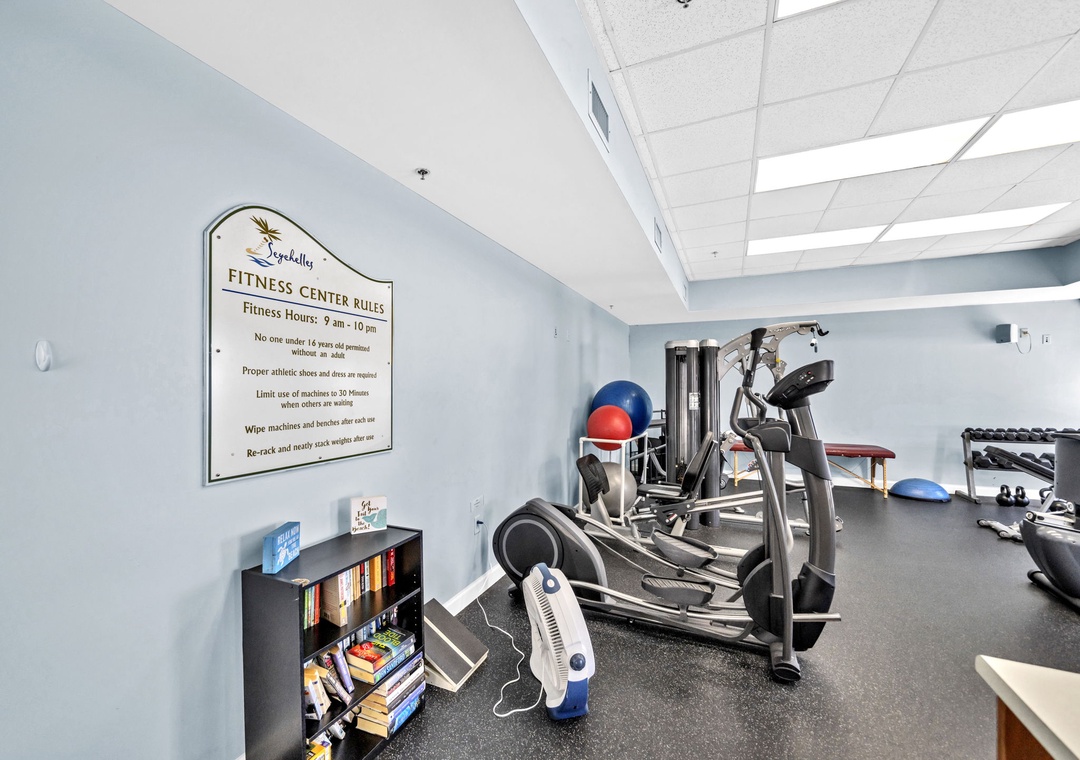 * Two beachfront pools, gazebo, fitness center, and covered parking
