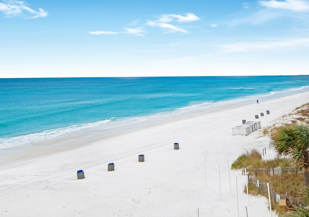 Conveniently located on the family-friendly, eastern end of Thomas Drive, the beach in front of Seychelles is fabulous! It's wide and deep and reminds one of "old Florida". Less than a mile away is gorgeous St. Andrews State Park. Grand Lagoon touches the park to the north and the south, the beautiful Gulf. Swimming and fishing are great at the park without the large crowds!