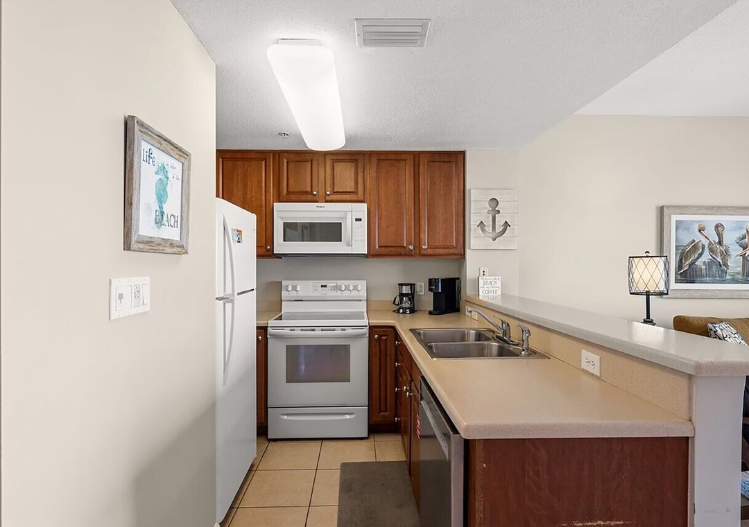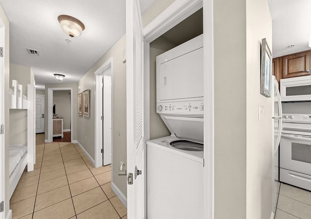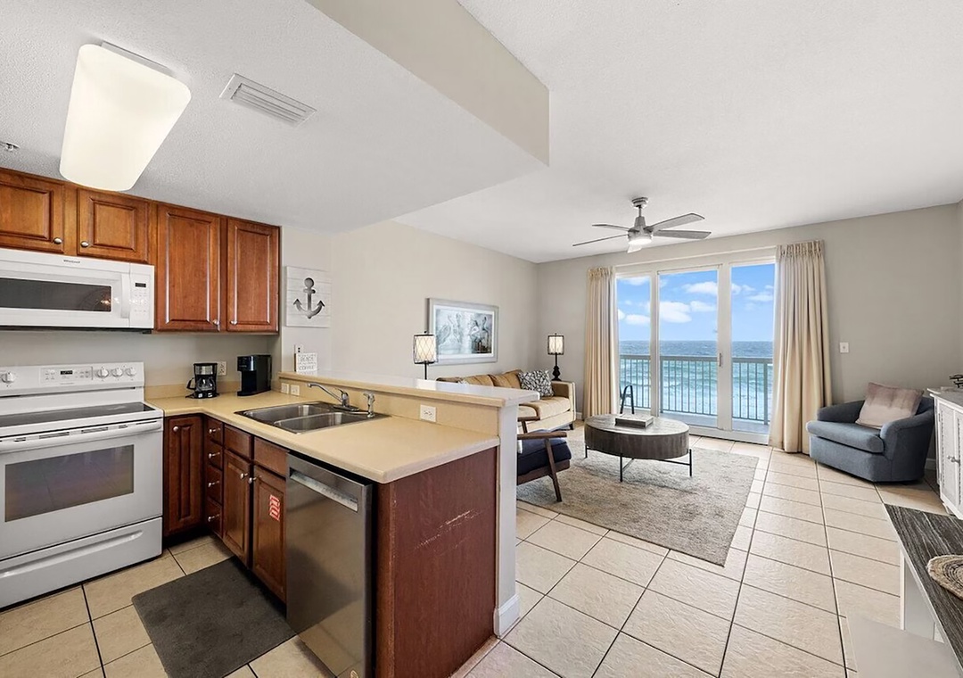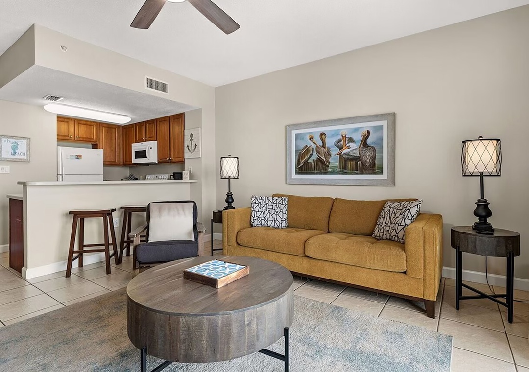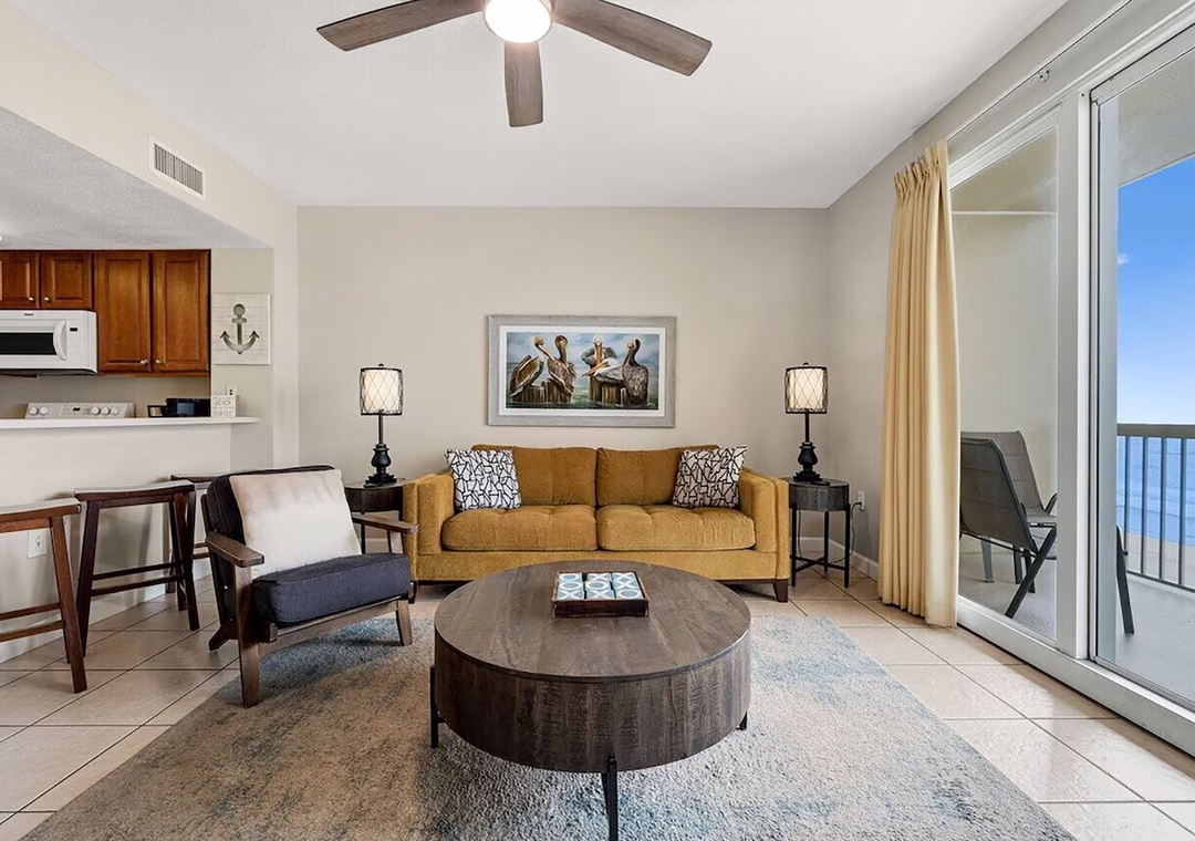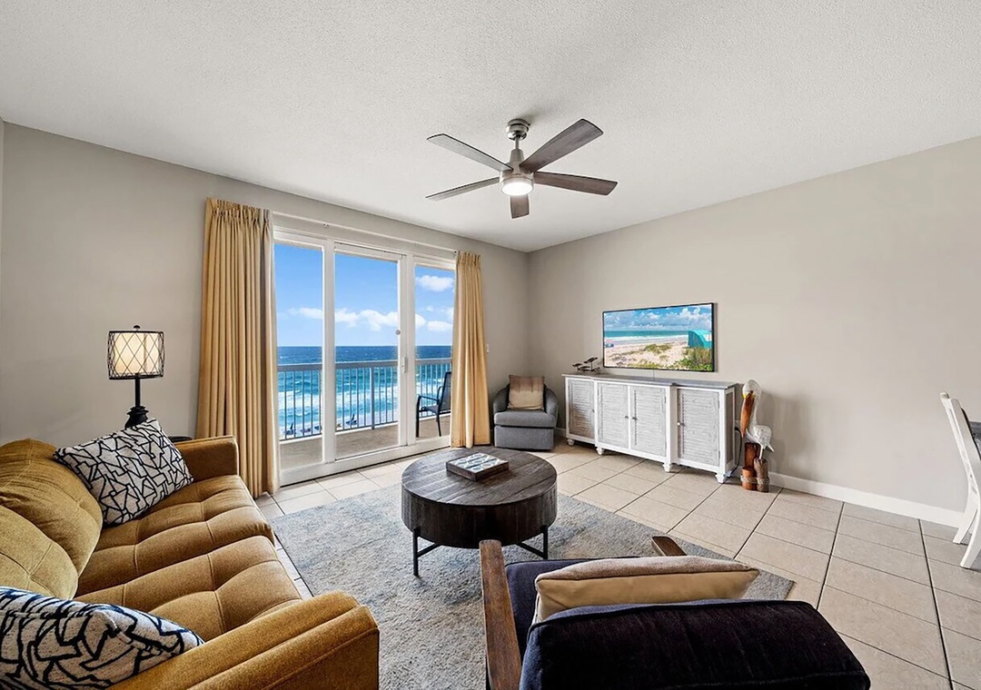 Escape to Seychelles 603, a vibrant 1-bedroom plus bunks, 2-bathroom beachfront condo that’s perfect for a family getaway, couples retreat, or a relaxing escape—because “603 is the Place to Be!” Perched on the 6th floor, this inviting retreat offers stunning Gulf views and the soothing sound of waves right from your private balcony, complete with brand-new high-top deck chairs ideal for sunset watching, outdoor dining, or simply unwinding. Inside, you’ll find a bright, cheerful space filled with playful coastal décor that creates a fun and welcoming atmosphere from the moment you arrive. Relax in the comfortable living area featuring a new 55” TV or gather with loved ones around the dining table and breakfast bar after a day at the beach. The fully equipped kitchen has everything you need for home-cooked meals, though the sugar-white sands are just steps away. The condo comfortably sleeps guests with a queen bed in the master bedroom, twin bunk beds in the hallway, and a sleeper sofa in the living room—making it the perfect spot to start creating unforgettable beach memories.