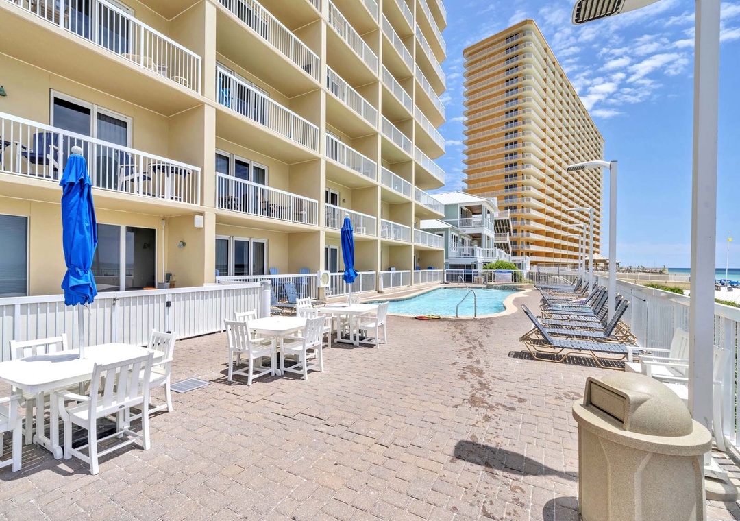 Conveniently located on the family-friendly, eastern end of Thomas Drive, the beach in front of Seychelles is fabulous! It's wide and deep and reminds one of "old Florida". Less than a mile away is gorgeous St. Andrews State Park. Grand Lagoon touches the park to the north and the south, the beautiful Gulf. Swimming and fishing are great at the park without the large crowds!