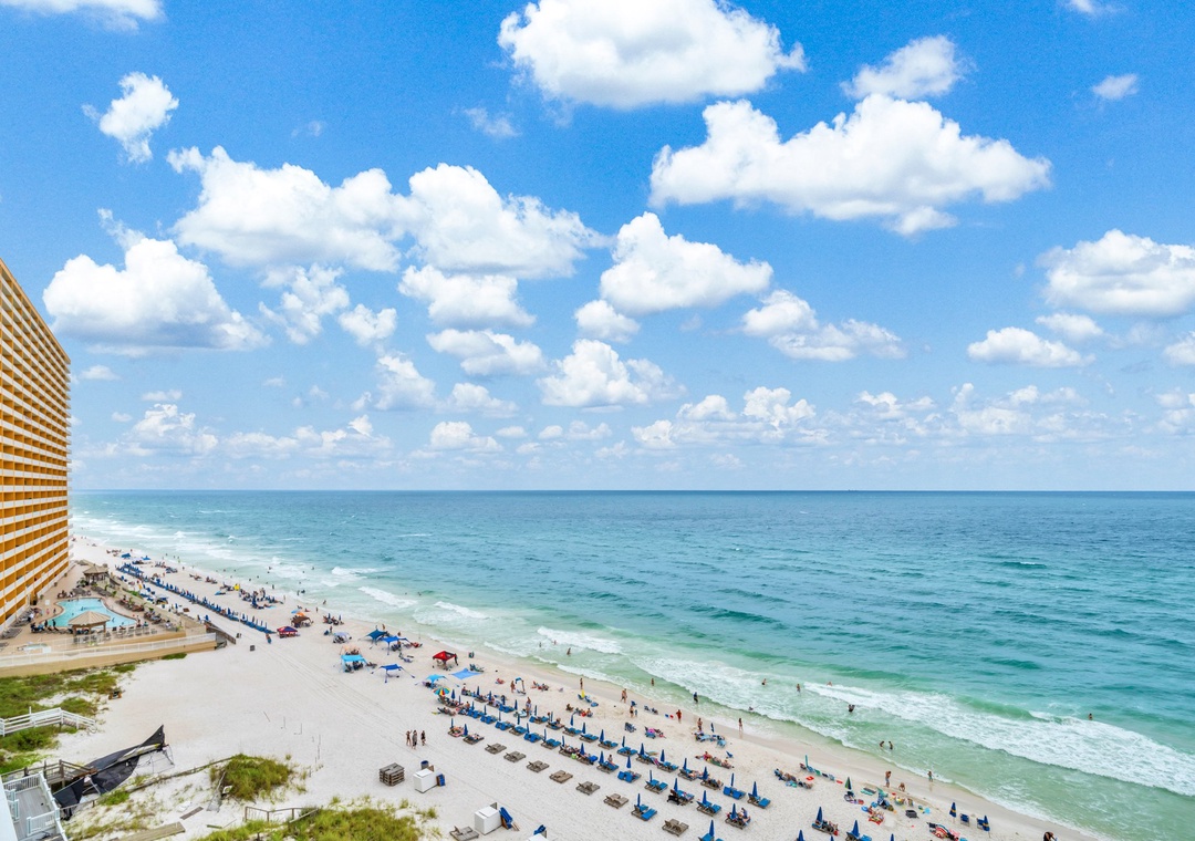 Conveniently located on the family-friendly, eastern end of Thomas Drive, the beach in front of Seychelles is fabulous! It's wide and deep and reminds one of "old Florida". Less than a mile away is gorgeous St. Andrews State Park. Grand Lagoon touches the park to the north and the south, the beautiful Gulf. Swimming and fishing are great at the park without the large crowds!