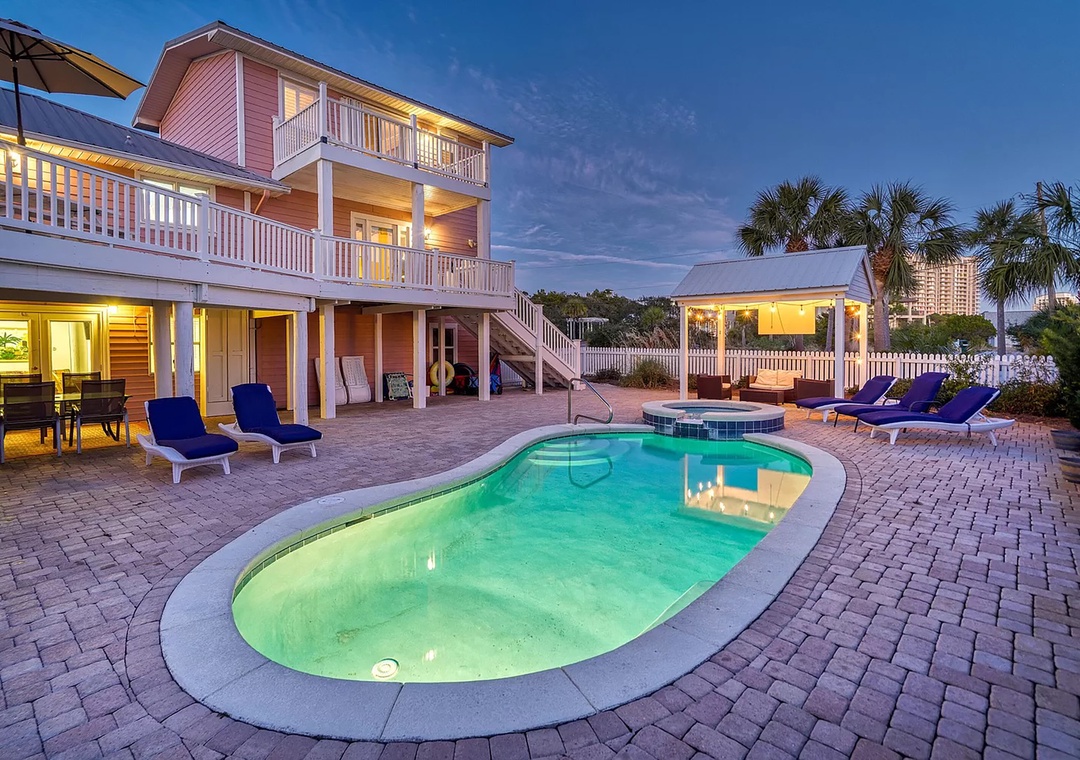 Welcome to Sheer Bliss, your luxury retreat in the Gulf Pines neighborhood! This stunning beach-view haven perfectly blends comfort and coastal elegance. With five spacious bedrooms accommodating up to 21 guests, it’s the ultimate getaway for family gatherings and group vacations. Step outside to your private backyard oasis featuring a lagoon-style pool, gas grill, outdoor television, lounge chairs, and plenty of comfortable seating — you may find it hard to leave!