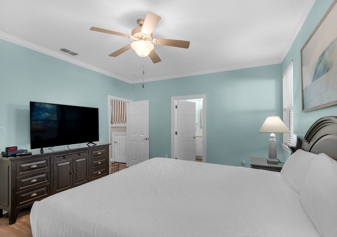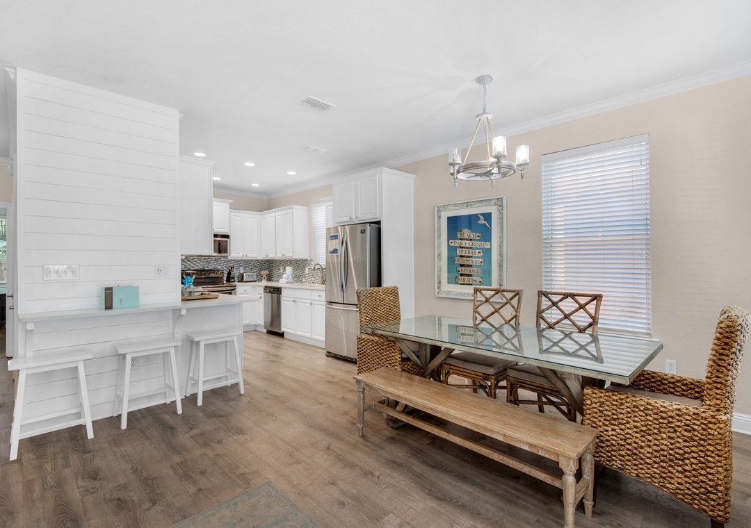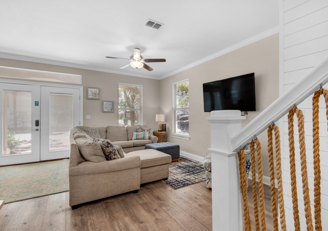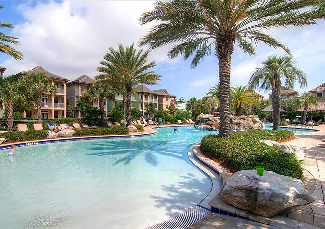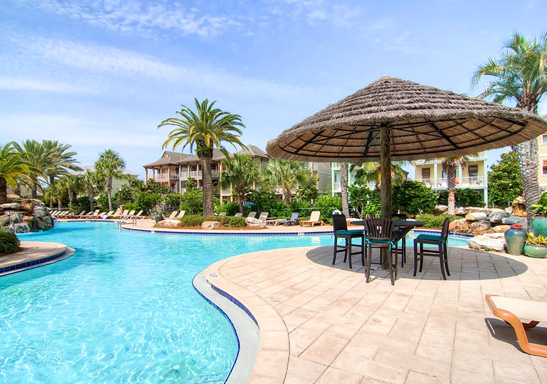 Villages of Crystal Beach is an exclusive, gated community only a few blocks from Destin's beautiful blue waters and white sandy beaches. You can make the walk on foot or hop on the free seasonal trolley service (Memorial Day through Labor Day): they will even pick you up at the house and drop you off right at the beach! The pool area at Villages of Crystal Beach is a vacation must! The lagoon-style zero-entry pool is 30,000 square feet of gorgeous, sparkling clear water. There is a spa, tropical landscaping, and plenty of seating areas. It also has surround sound, a flat-screen TV, and a grilling area to help you relax and unwind.