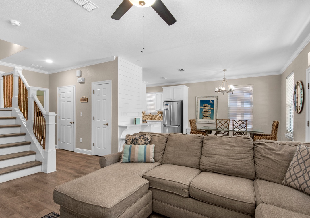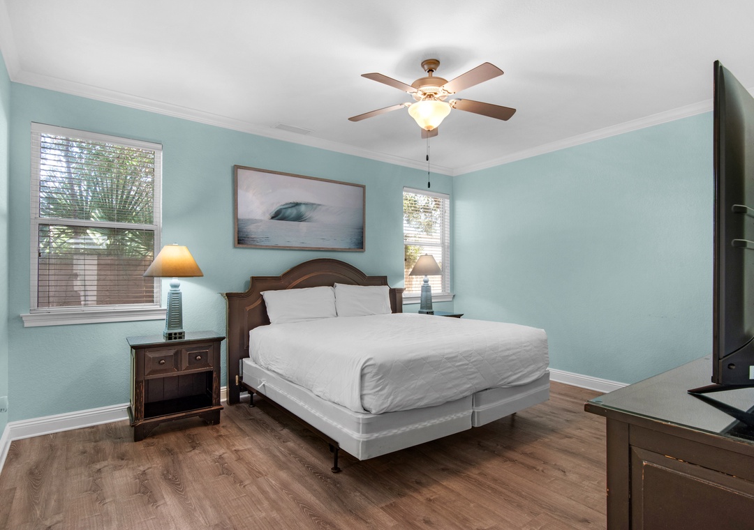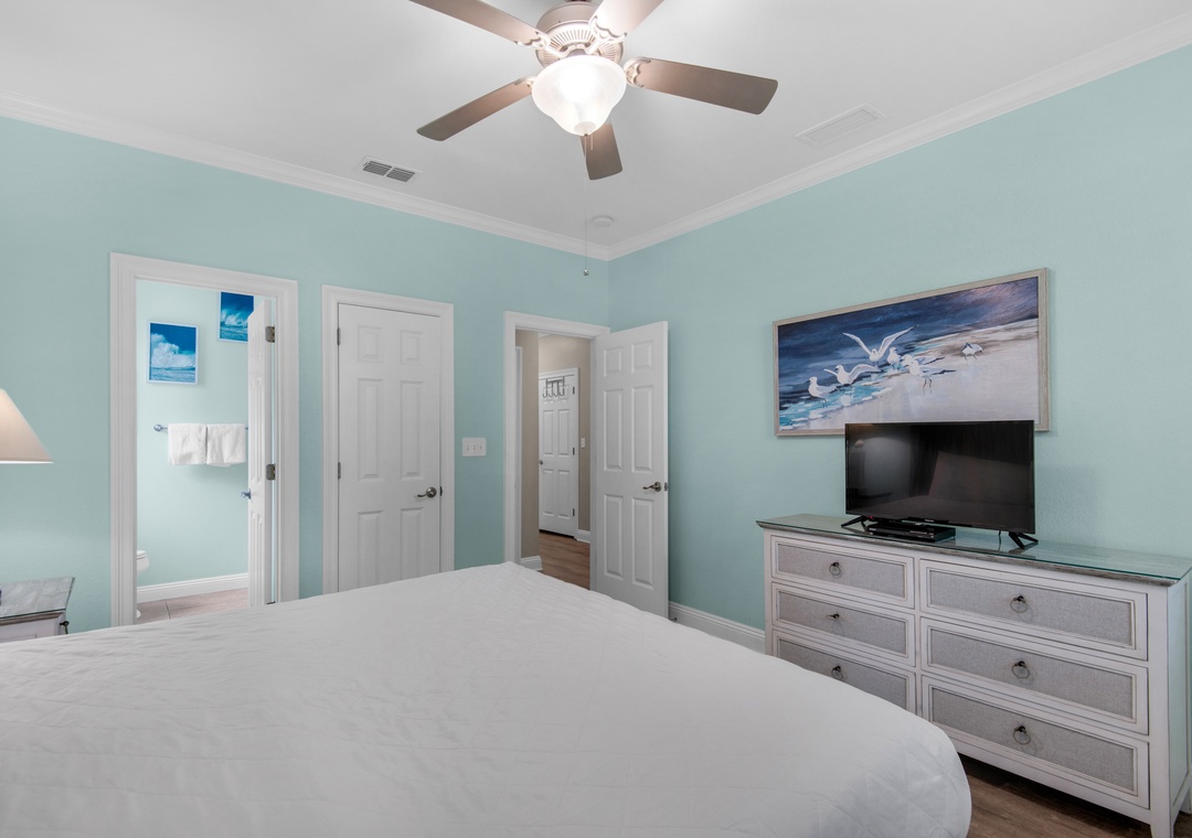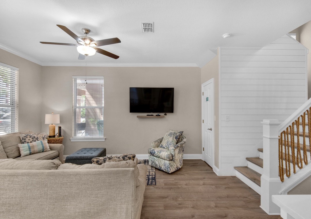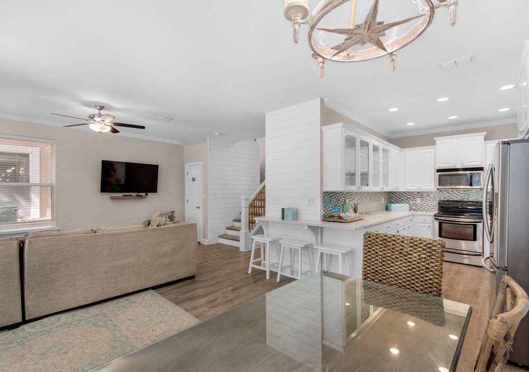Villages of Crystal Beach is an exclusive, gated community only a few blocks from Destin's beautiful blue waters and white sandy beaches. You can make the walk on foot or hop on the free seasonal trolley service (Memorial Day through Labor Day): they will even pick you up at the house and drop you off right at the beach! The pool area at Villages of Crystal Beach is a vacation must! The lagoon-style zero-entry pool is 30,000 square feet of gorgeous, sparkling clear water. There is a spa, tropical landscaping, and plenty of seating areas. It also has surround sound, a flat-screen TV, and a grilling area to help you relax and unwind.