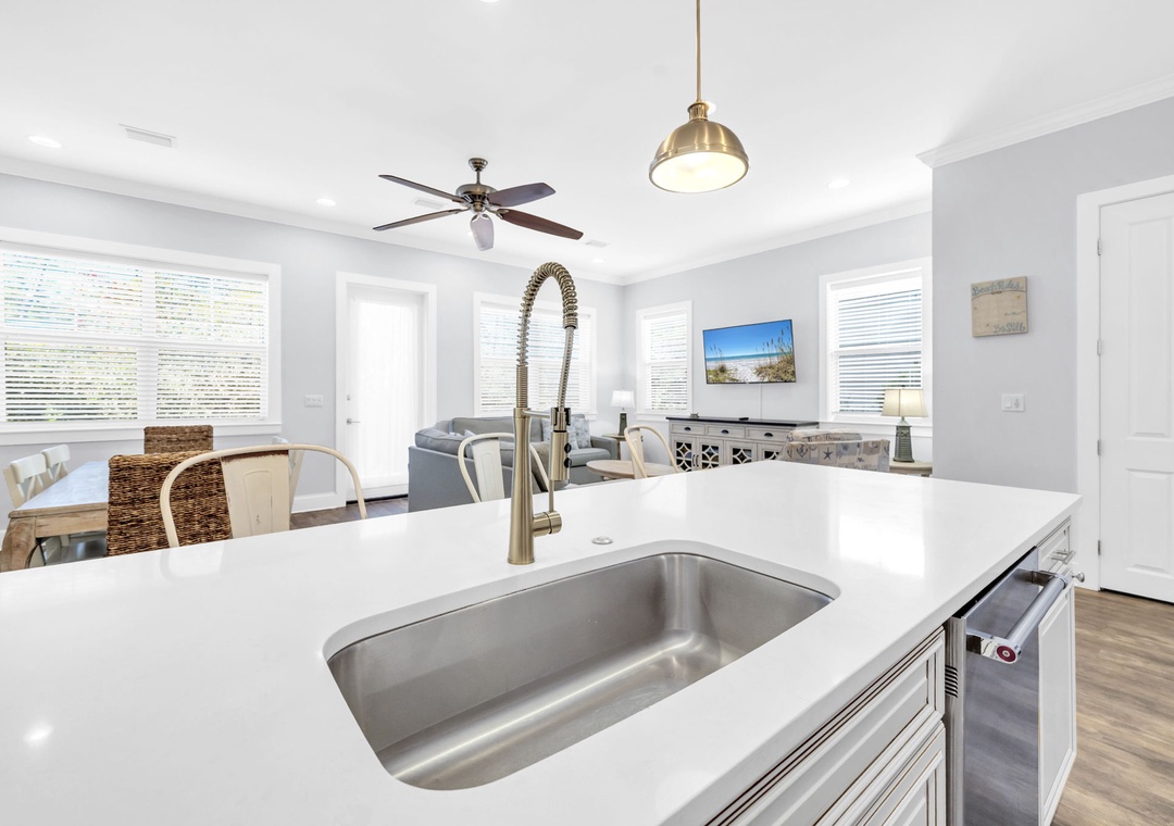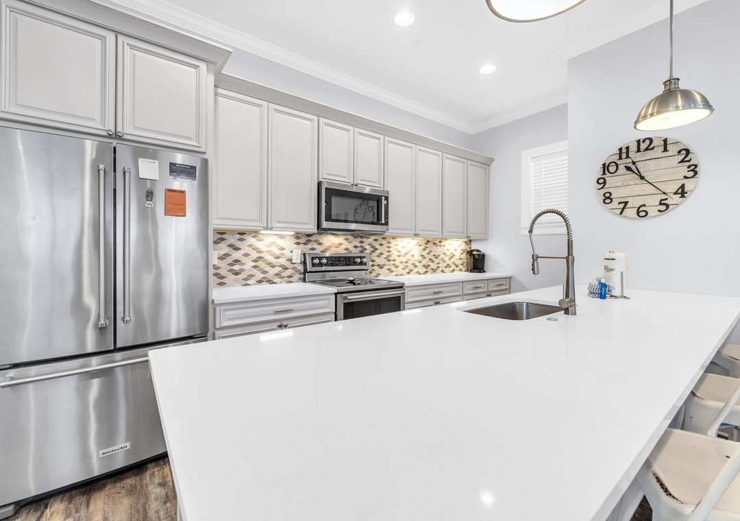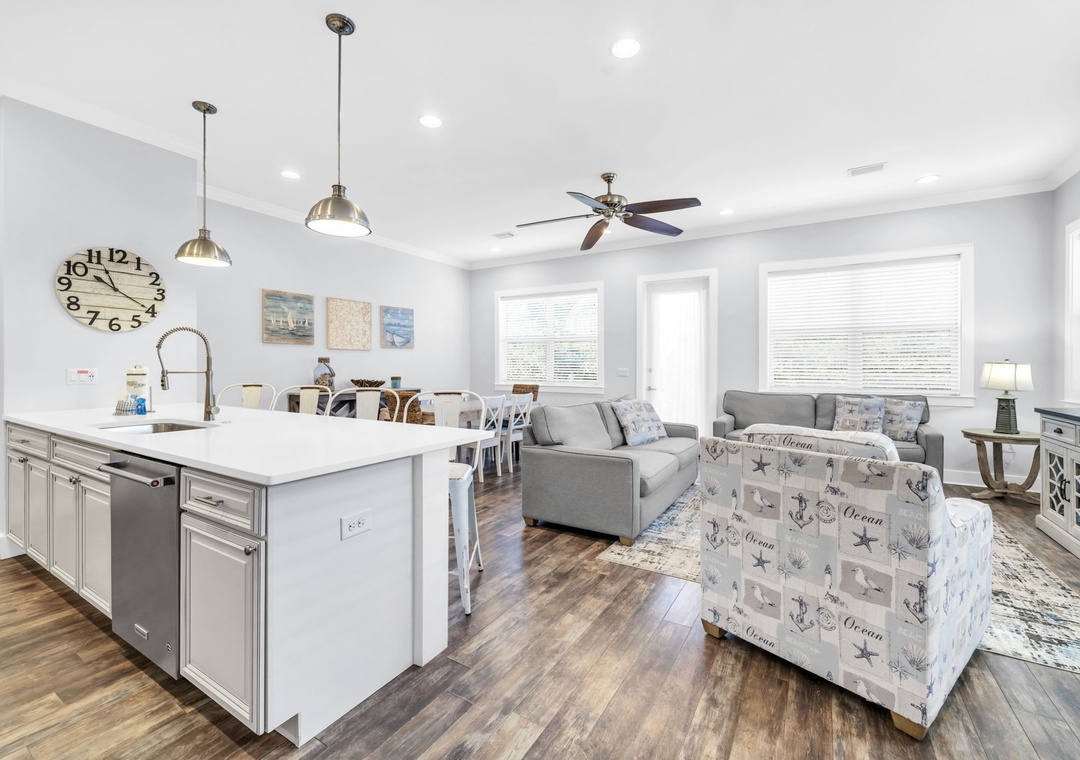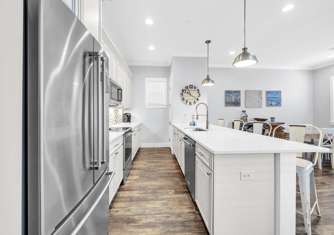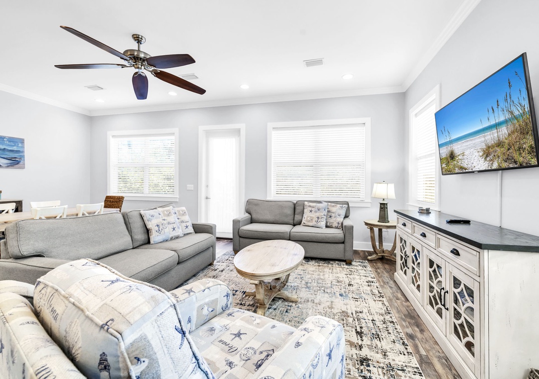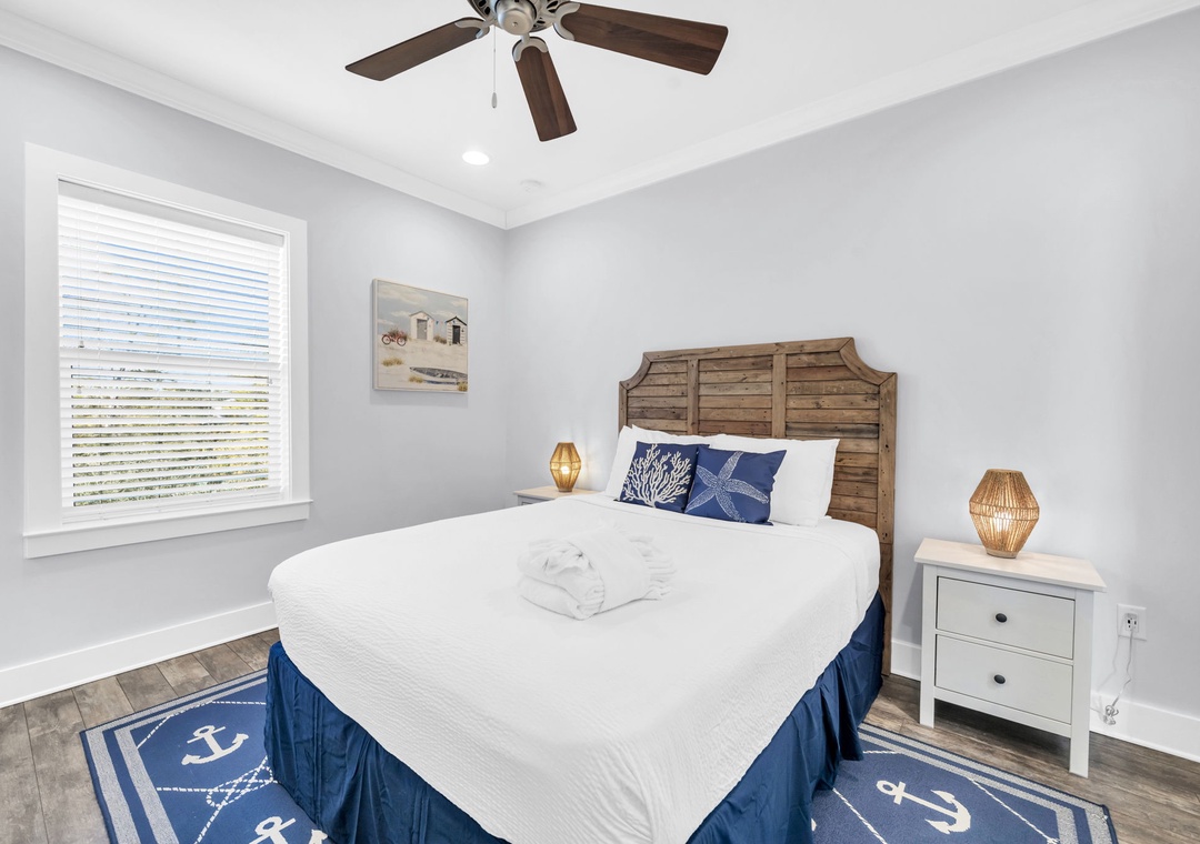 Welcome to Shore Beats Work 30A, your perfect home away from home! This stunning 4-bedroom, 4.5-bath retreat is nestled in the Gulf Reflections community, just off Highway 30A near Gulf Place. Only a few blocks from the beach, this beautiful home features a bright, open living and dining area ideal for gathering with family and friends. Start your mornings in the fully equipped kitchen, complete with an extended breakfast bar, perfect for cooking and enjoying breakfast together. The first floor offers a comfortable guest bedroom with a queen bed, while the second floor features a spacious king master suite with private balcony access, a second guest bedroom with a queen bed, and a fun bunk room with two twin-over-twin bunk beds — sleeping up to 10 guests comfortably. Every bedroom includes its own ensuite bathroom for added privacy and convenience. When you’re not relaxing indoors, take a dip in the community pool or enjoy a stroll to the nearby beach. Make unforgettable memories and enjoy the vacation of a lifetime at Shore Beats Work 30A!