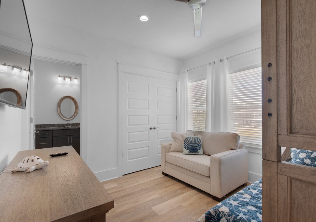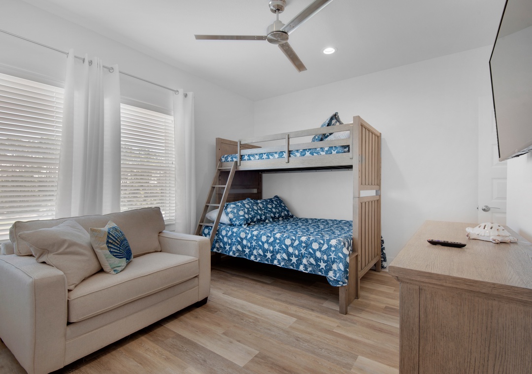 Guest Bedroom: Twin-over-Full Bunkbed and Sleeper Sofa Chair