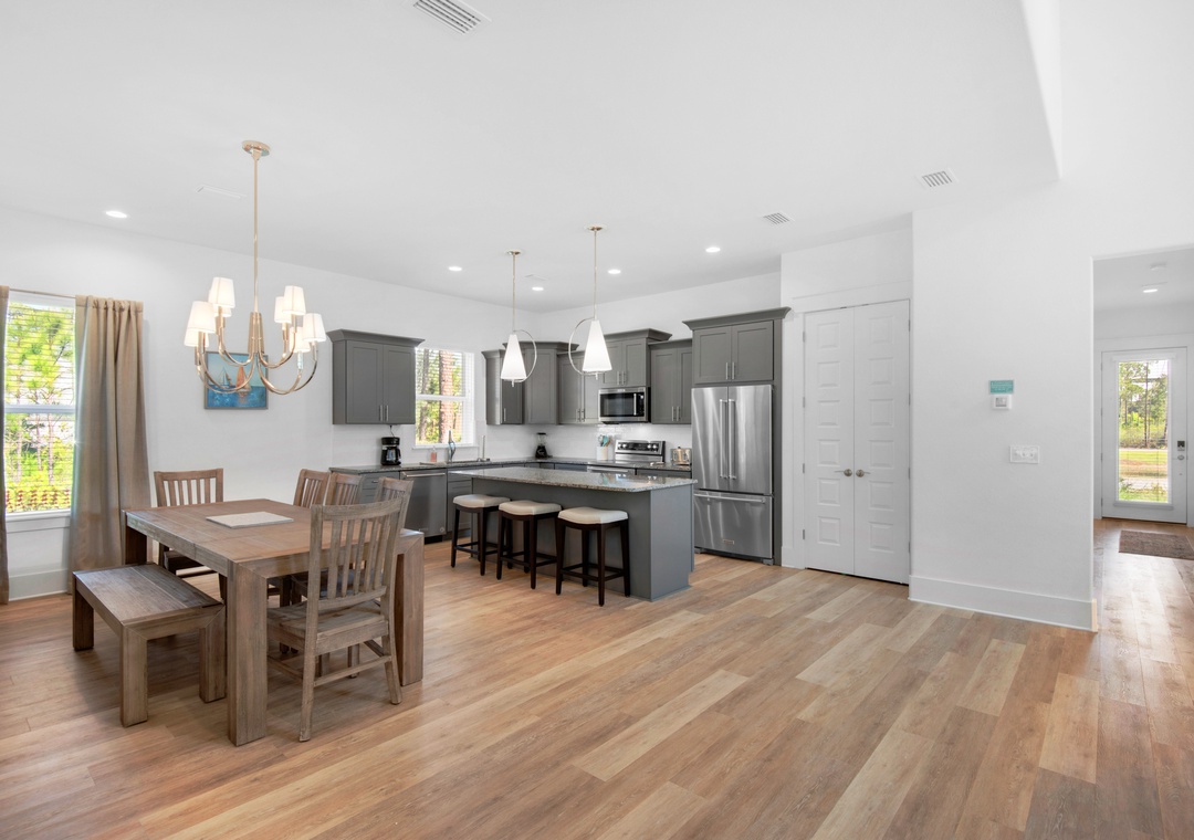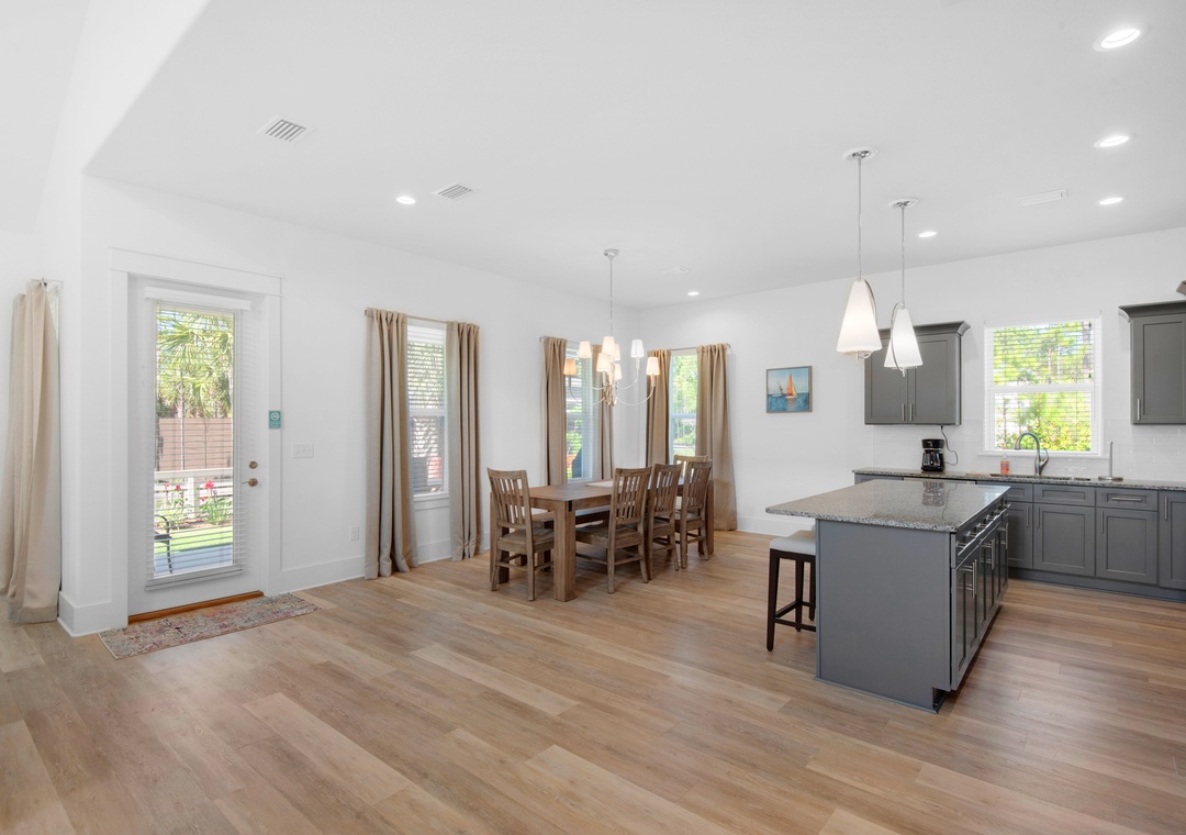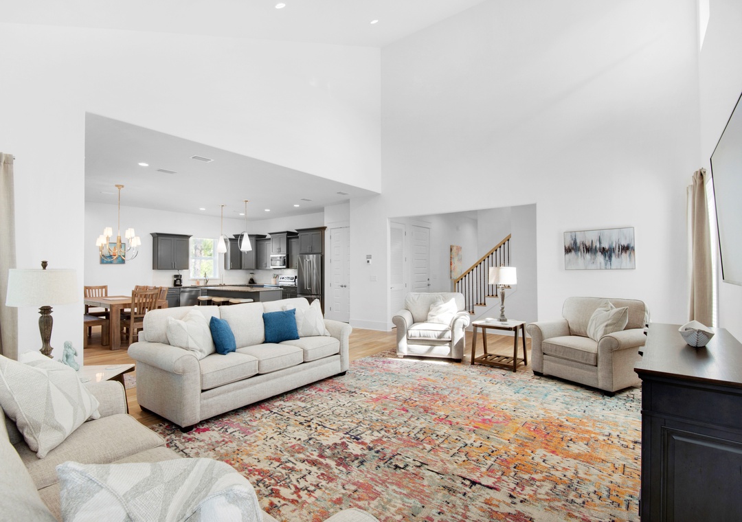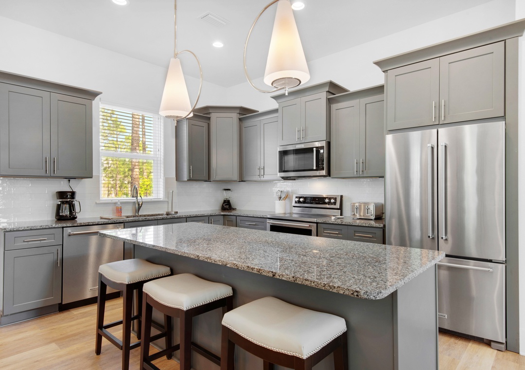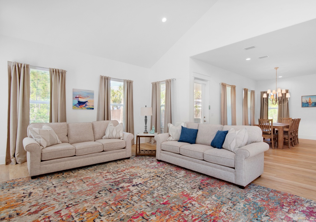 Located in Villas of Frangista, Shore Enough is a beautiful 4 bedroom, 3 bath home featuring a huge open living area with vaulted ceilings and gorgeous furnishings throughout! The roomy kitchen boasts stainless steel appliances, a large island, and granite countertops. The master suite has a king bed and a master bath with dual vanities and a walk-in shower. With the addition of two queen bedrooms and a bunk room with a twin-over-full bunk and a sleeper sofa chair, the home sleeps up to 10 guests comfortably. This home has a pond directly across the street and no neighbors behind it, so more peace and quiet for you! You'll be less than a mile from the beach access to the gorgeous white sands of Miramar Beach! When not enjoying the beach, take a stroll to the community pool only a couple of blocks away. Make your next vacation one to remember at Shore Enough!