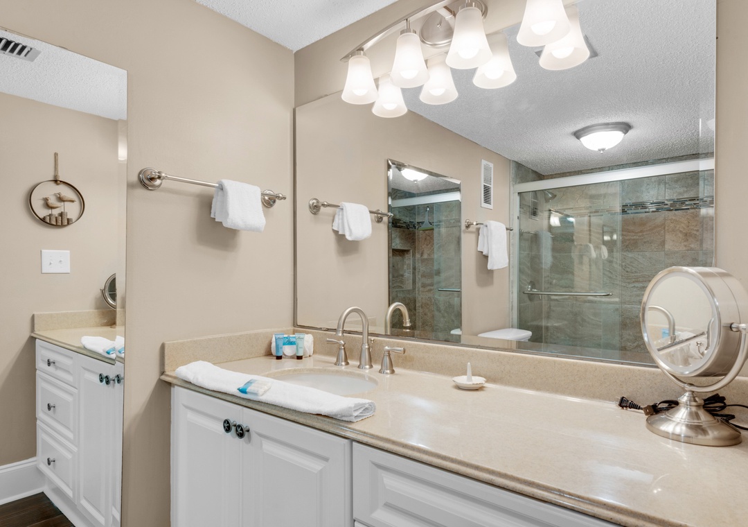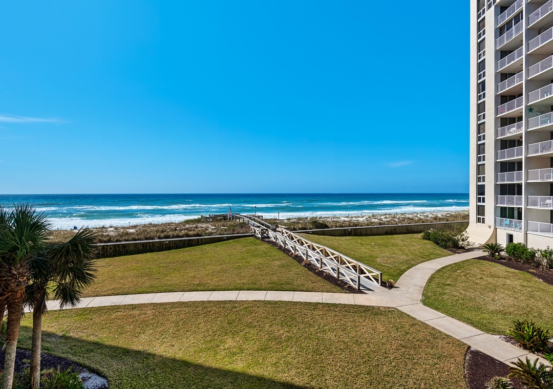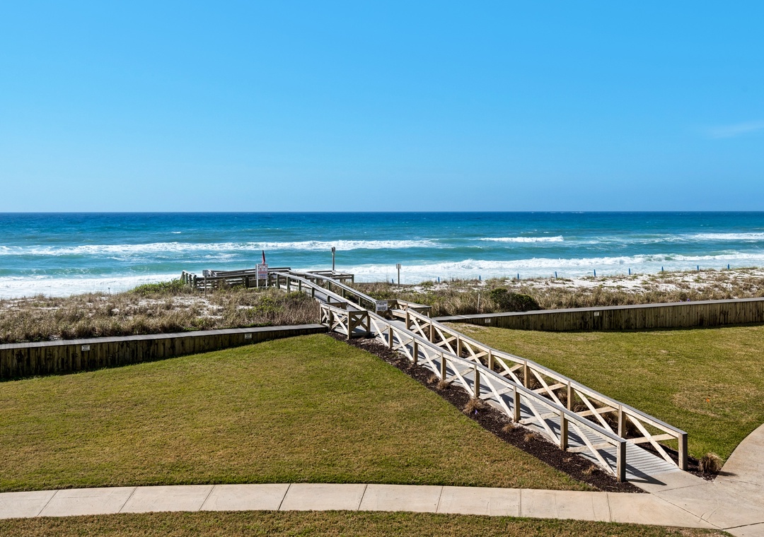 We're within walking distance of shopping and restaurants and only a block or two away from the Big Kahuna's, Destin's fun waterpark. Walk only 300 feet to the beach. No streets to cross to get to the private beach or the heated pool. From this lovely complex, you'll experience the sights and sounds of the ocean, watch a sunrise or sunset over the water or the sail boats and fishing boats go by.