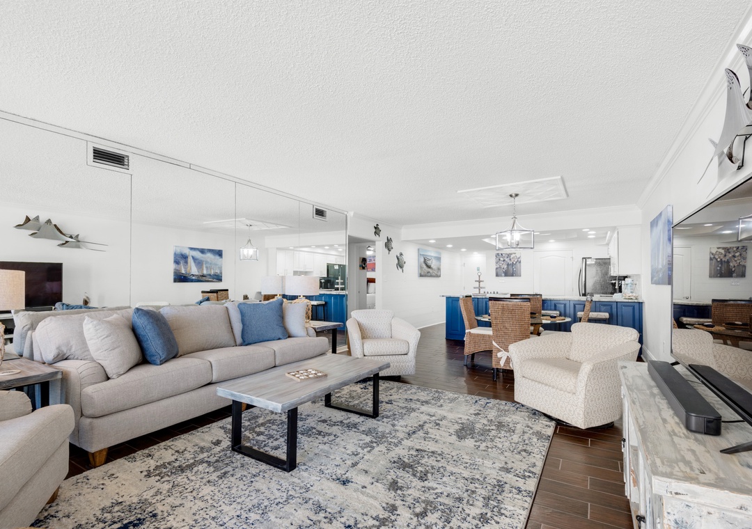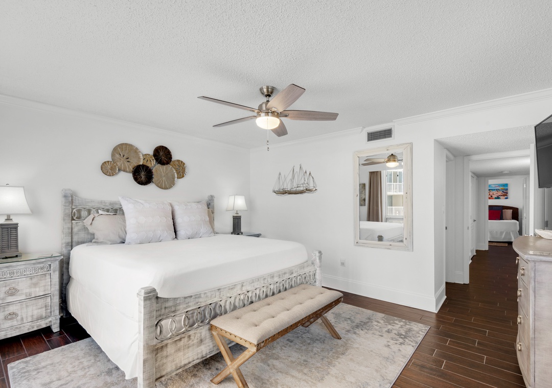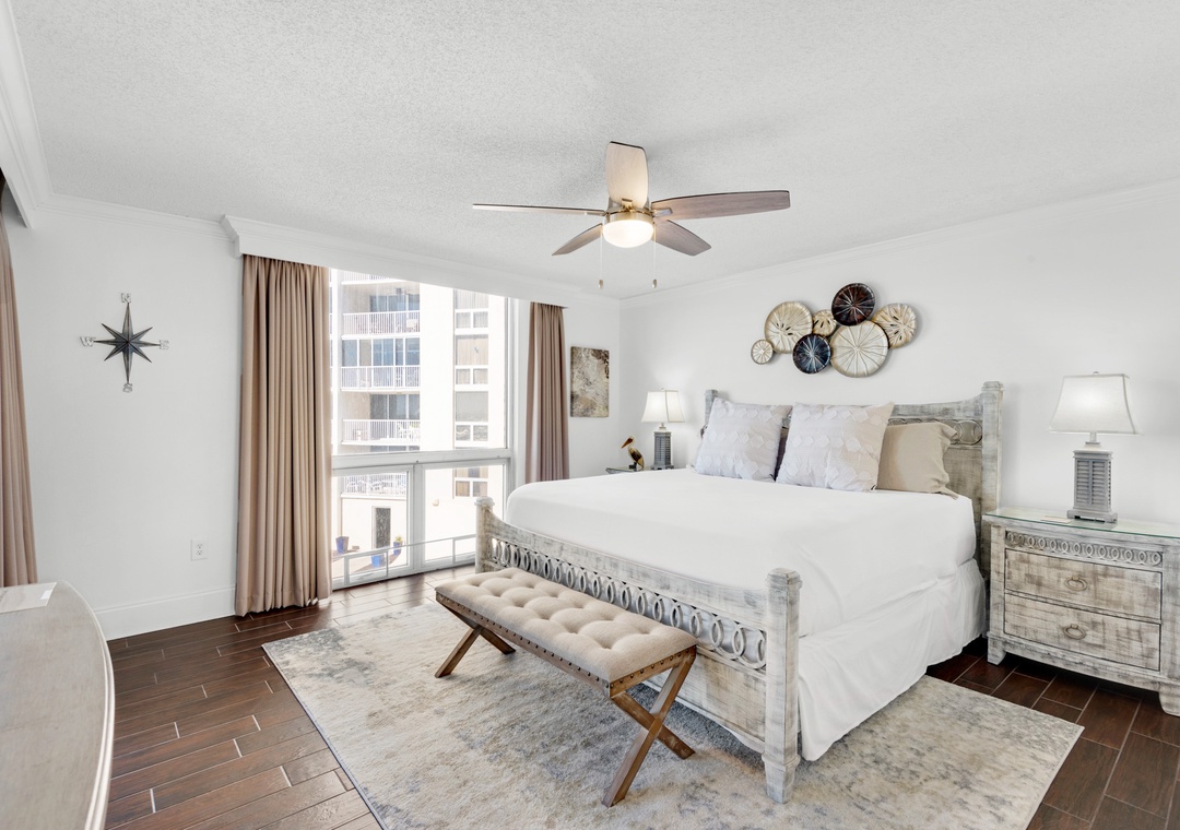 This condo is beautifully decorated with a beach theme. Everything worked as it should. The bed in the master was comfy and with a nice view. (That’s the only bed we slept in). This was a great place to stay for our quick getaway. The only things I did not like was the balcony was very dirty (had not been cleaned, swept or wiped down in a while) and the couch held a musky smell. That’s the only issue we found.- Reviewed On: 4/21/2024