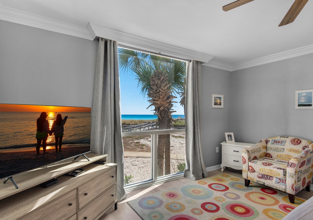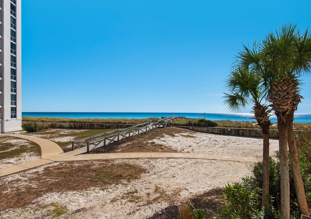 We're within walking distance of shopping and restaurants and only .5 miles away from the Big Kahuna's, Destin's fun waterpark. Walk only 300 feet to the beach. No streets to cross to get to the private beach or the heated pool. From the open balcony, you'll experience the sights and sounds of the ocean, watch a sunrise or sunset over the water, or watch sailboats and fishing boats go by. Walkable restaurants for breakfast, lunch, and dinner, and less than a mile from Lone Wolf Pizza, and Cracklings. A short drive to the Harborfront, with boat and jet ski rentals plus more great restaurants!