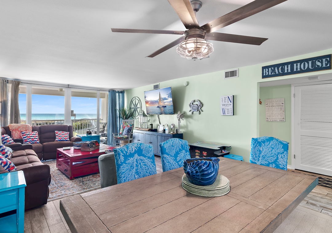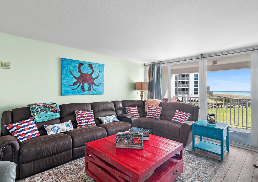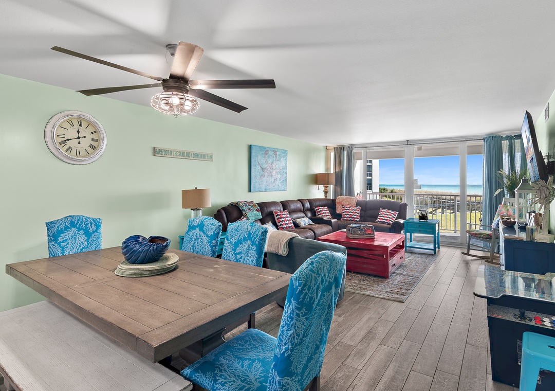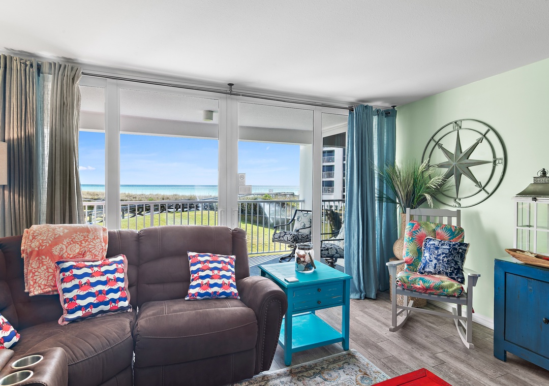 We're within walking distance of shopping and restaurants and only .5 miles away from the Big Kahuna's, Destin's fun waterpark. Walk only 300 feet to the beach. No streets to cross to get to the private beach or the heated pool. From the open balcony you'll experience the sites and sounds of the ocean, watch a sunrise or sunset over the water or the sail boats and fishing boats go by. Less than a mile from Lone Wolf Pizza Company and Crackings and a short drive to the Harborfront, with boat and jet ski rentals plus more great restaurants!