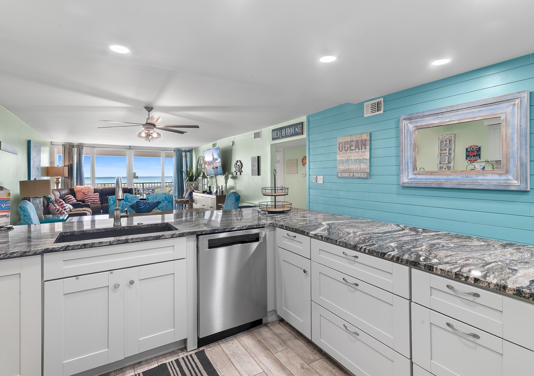 Shoreline Towers 2025 is a fully remodeled 2BR/2BA condo just footsteps from the sugar white beaches and emerald waters in Destin, Florida. With stunning beach views in every room, this condo will have you feeling like you are in paradise. This home boasts charming furniture, updated flooring, eat-in kitchen w/ new granite counters and new stainless steel appliances, and spacious open concept perfect for entertaining! With a king bed in the master, two queen beds and a twin bunk bed in the second bedroom, this lovely condo sleeps a max of 6 guests per HOA rules. The spectacular beachfront views and resort amenities will make your stay wonderful! Head to the beach, enjoy the sauna, a lap around the pool, a game of shuffleboard, grill up your fresh catch on the barbecue, or a have a picnic overlooking the lake! Make lasting vacation memories at Shoreline Towers 2025!