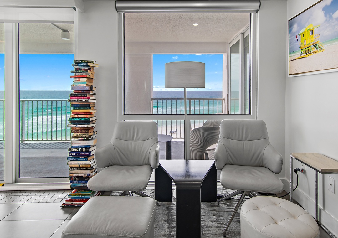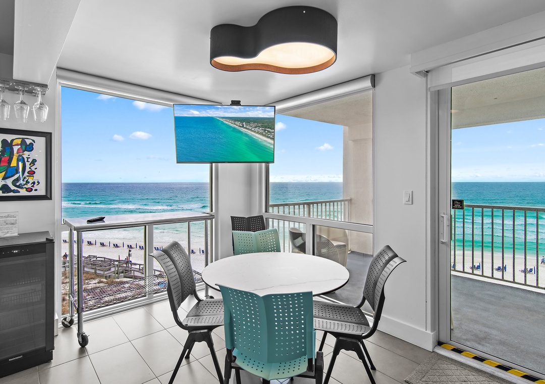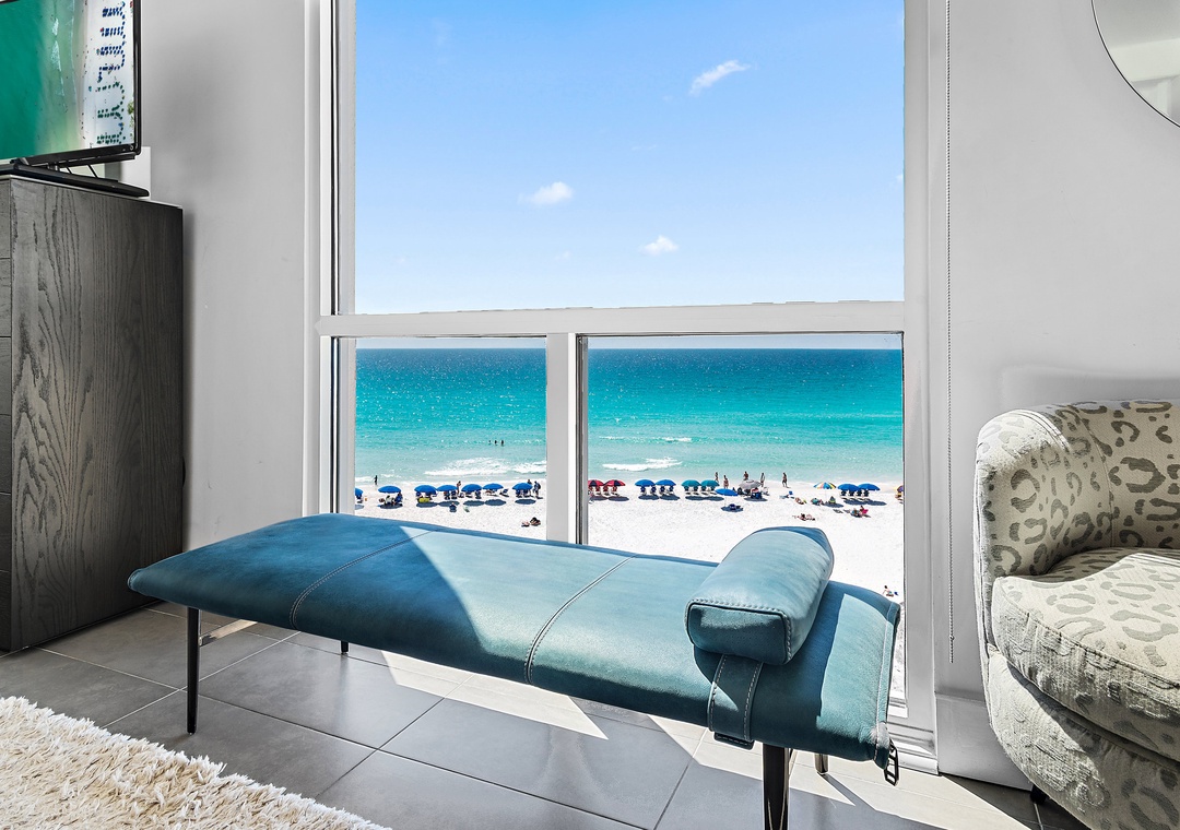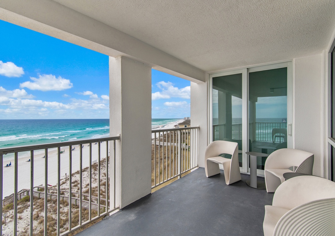 The private balcony is nothing short of spectacular. At six stories above the Gulf, you experience the rare balance of intimacy and grandeur—close enough to hear the rhythmic waves and watch dolphins pass, yet elevated enough to enjoy uninterrupted views and serene seclusion. It truly feels as though you are suspended directly above the shoreline.