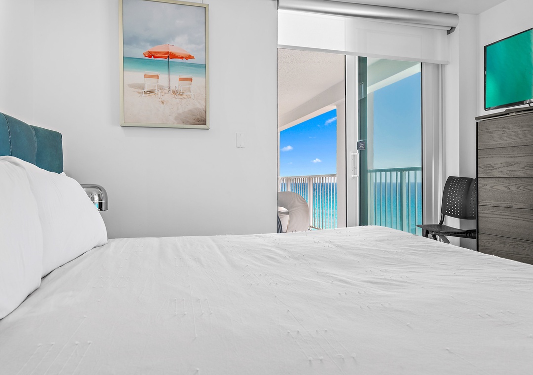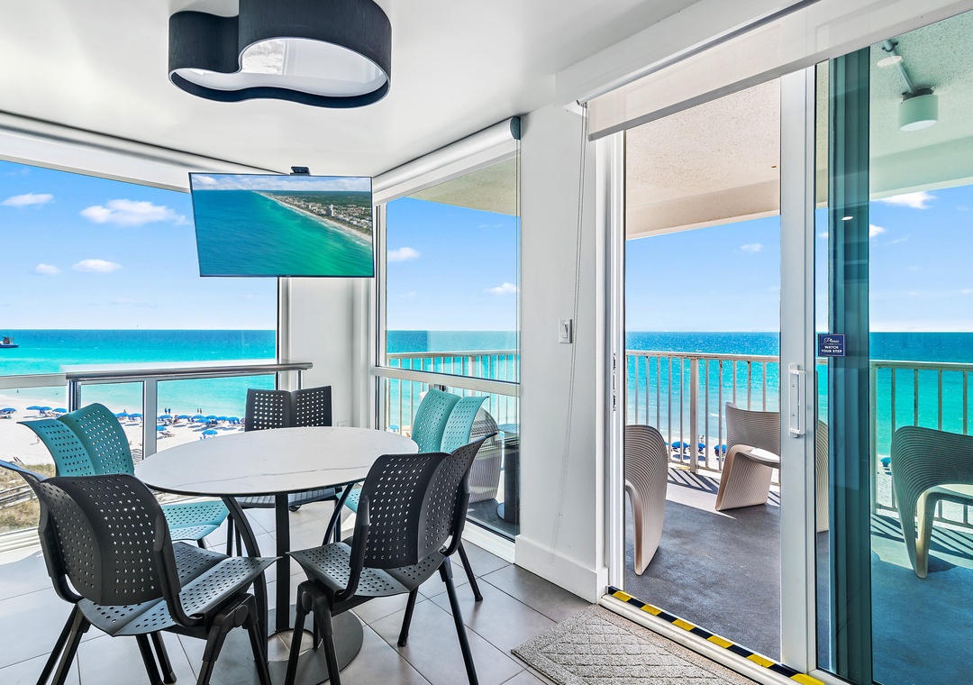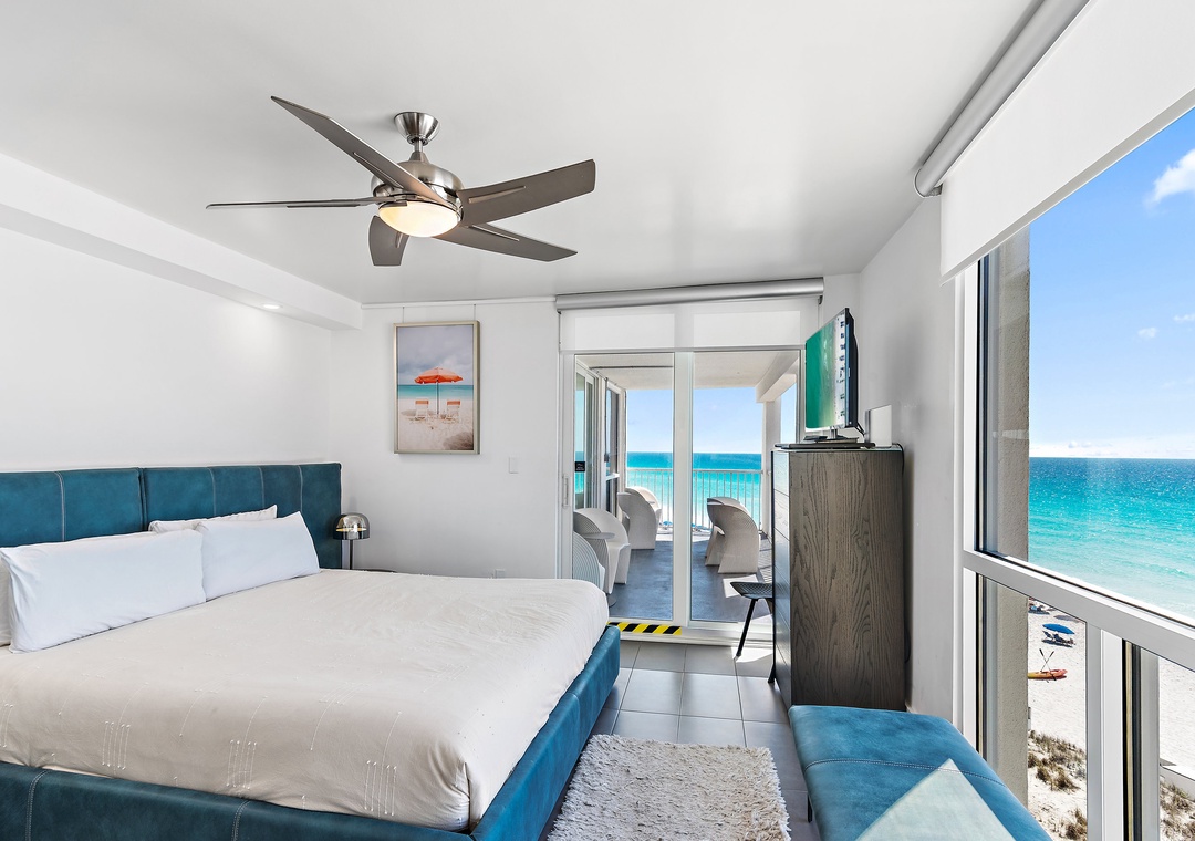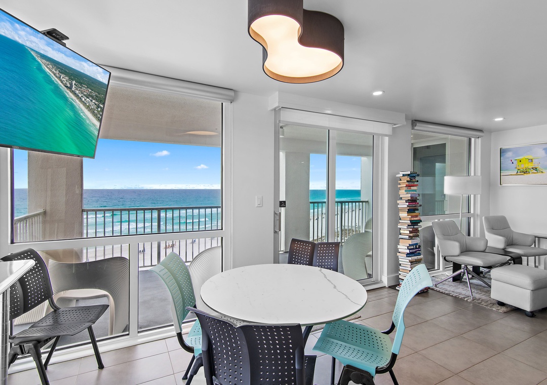 The private balcony is nothing short of spectacular. At six stories above the Gulf, you experience the rare balance of intimacy and grandeur—close enough to hear the rhythmic waves and watch dolphins pass, yet elevated enough to enjoy uninterrupted views and serene seclusion. It truly feels as though you are suspended directly above the shoreline.