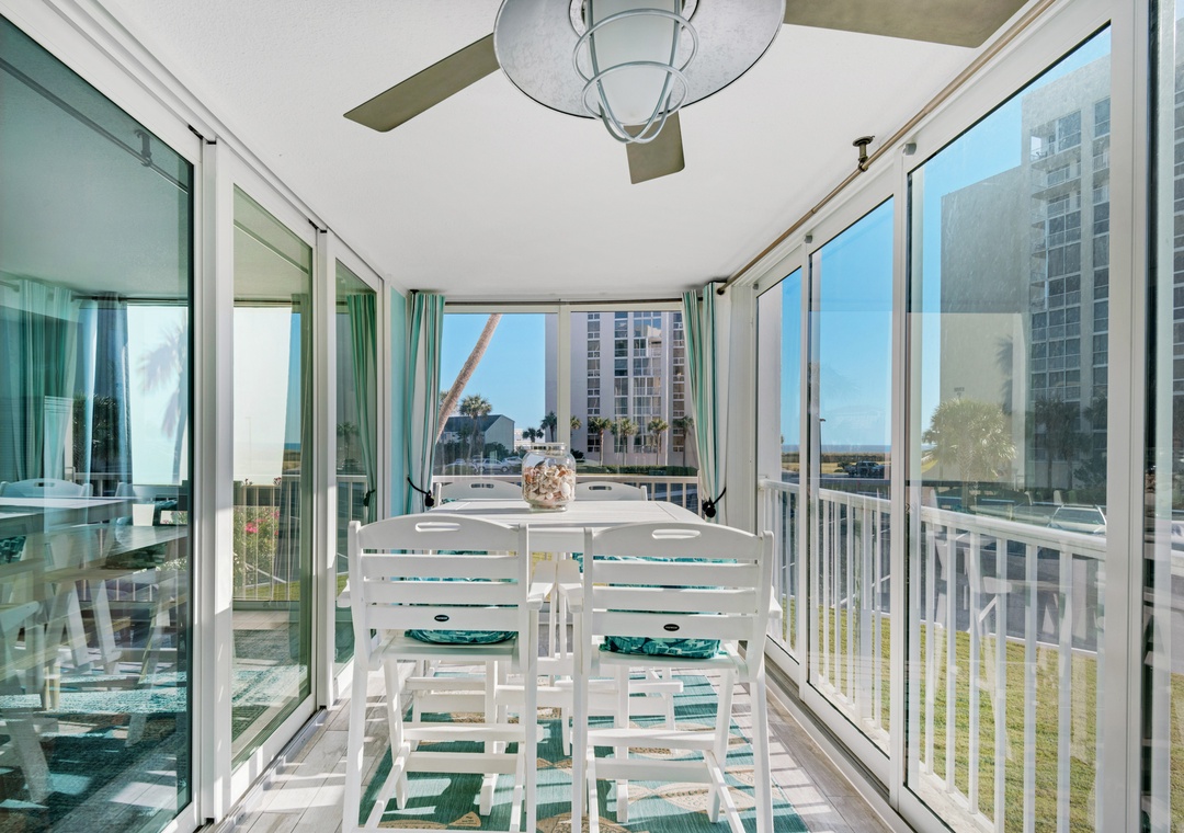 Janice, we love knowing that you found your condo at Shoreline Towers to be comfortable and well-stocked, enjoying the enclosed sunroom and available seating. Thank you for choosing a Real Joy property. We look forward to seeing you again in the future.Real Joy staff