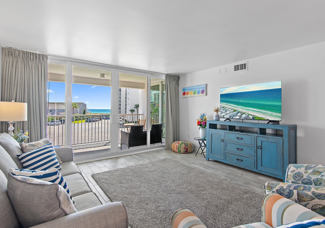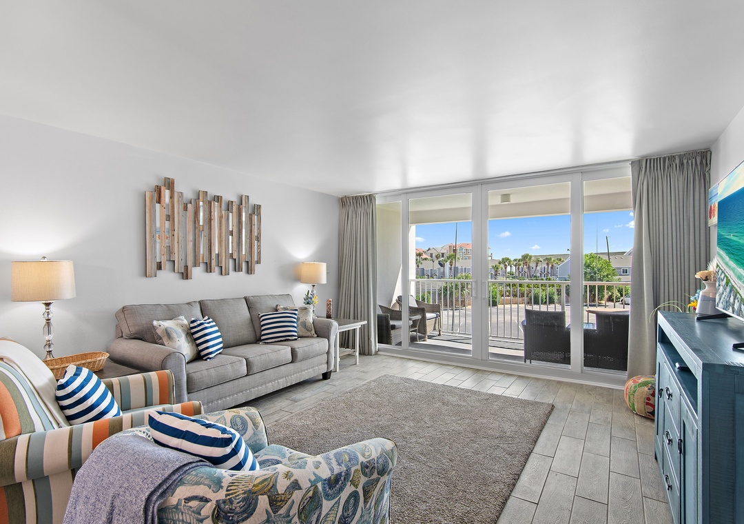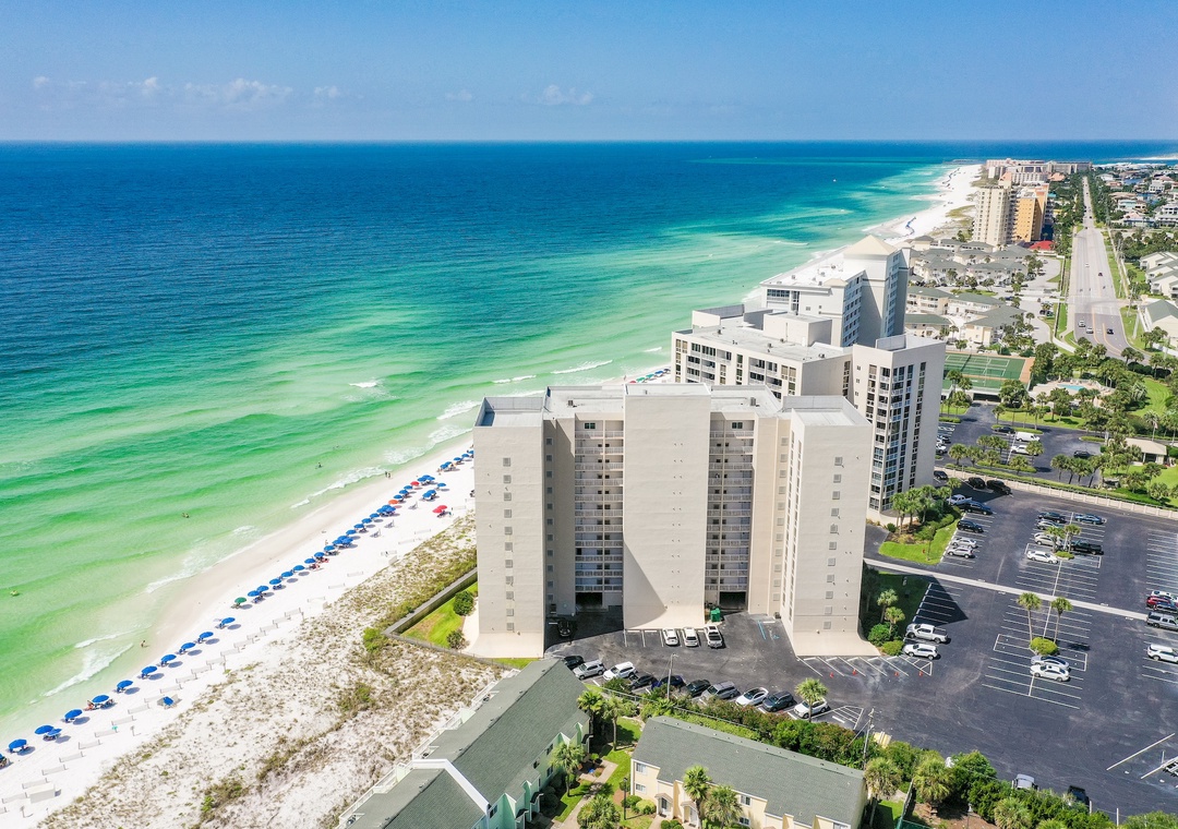 We're within walking distance of shopping and restaurants, and only .5 miles away from the Big Kahuna's, Destin's fun waterpark. Walk only 300 feet to the beach. No streets to cross to get to the private beach or the heated pool. From the open balcony, you'll experience the sights and sounds of the ocean, watch a sunrise or sunset over the water, or watch the sailboats and fishing boats go by. Less than a mile from Mellow Mushroom and Another Broken Egg Cafe, and a short drive to the Harborfront, with boat and jet ski rentals plus more great restaurants!