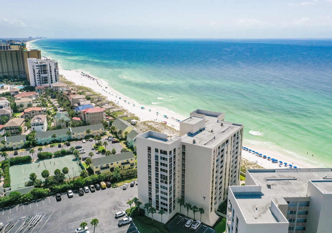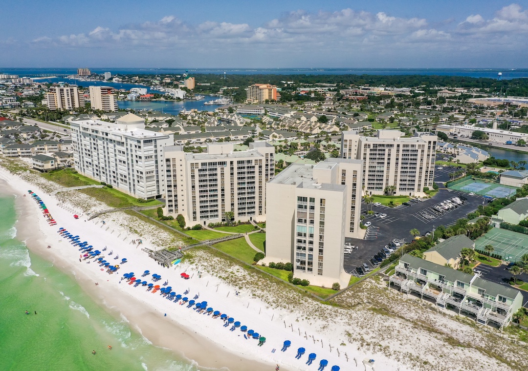 You can't beat this location! In the heart of Destin, Shoreline Towers is within minutes of restaurants, shopping, water sports, fishing, and golf. The amenities offered at this well-managed resort are amazing! Enjoy the soothing sauna, swim in our pristine, clean pool, play shuffleboard, use the exercise room, grill out, or picnic by the lake. We even have a clubhouse for your gatherings with family and friends. Security on the property 24/7 for guest safety and convenience.
