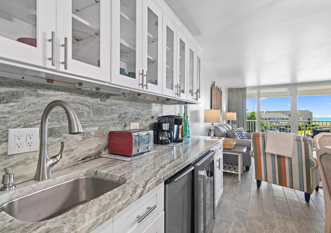 * Wet bar featuring a sink, wine cooler, and ice maker