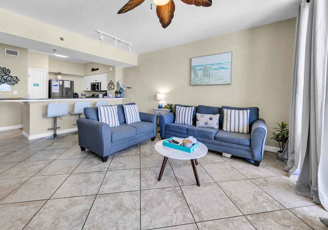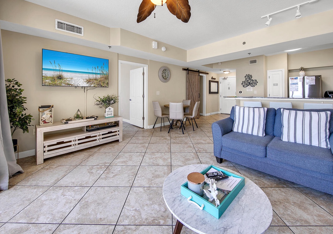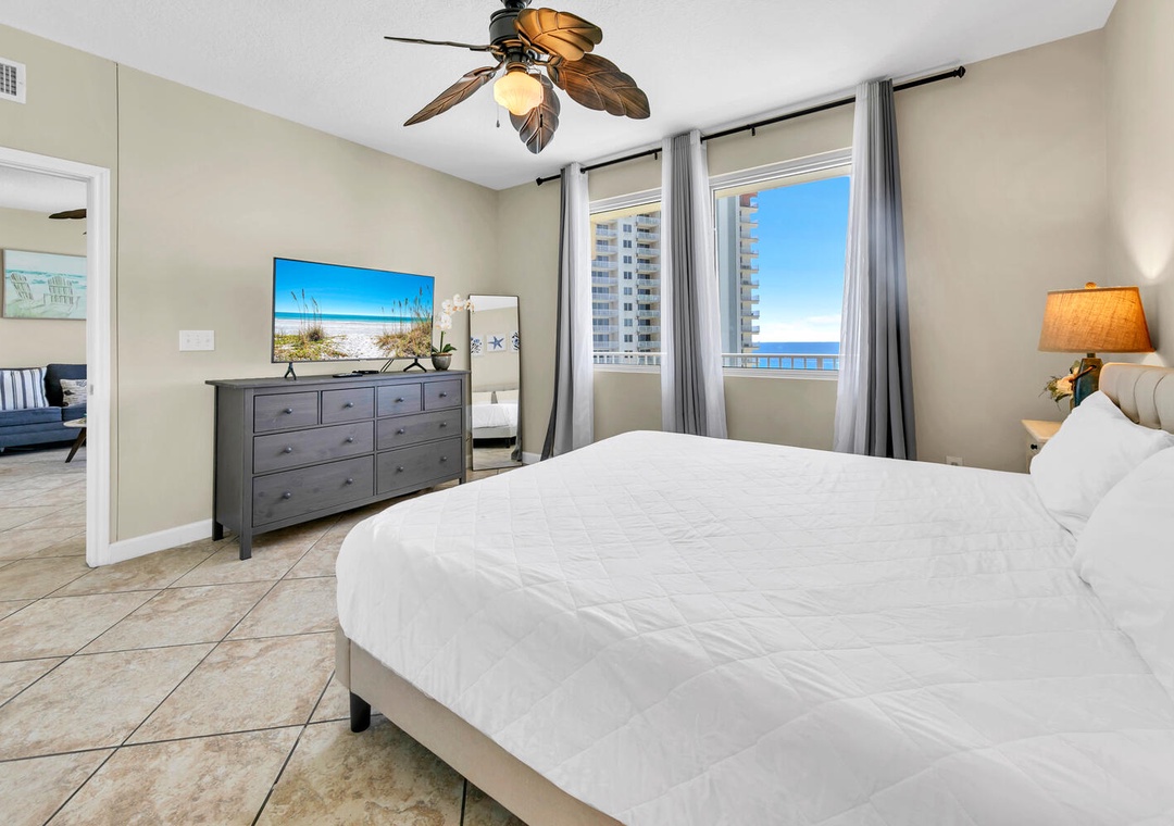 This unit was great for our 3 person family. From the parking spot only 8 steps from the front door, to the large balcony with great views of the pool area and beach/ocean, it was a great way to spend 6 days of our vacation. We had an issue with the TV while we were there but the property Mgmt company had it resolved quickly. The only other feedback we have is the ceiling fan in the master bedroom was noisy, and the 2nd bedroom beds are far smaller than they appear in the picture.- Reviewed On: 6/23/2023