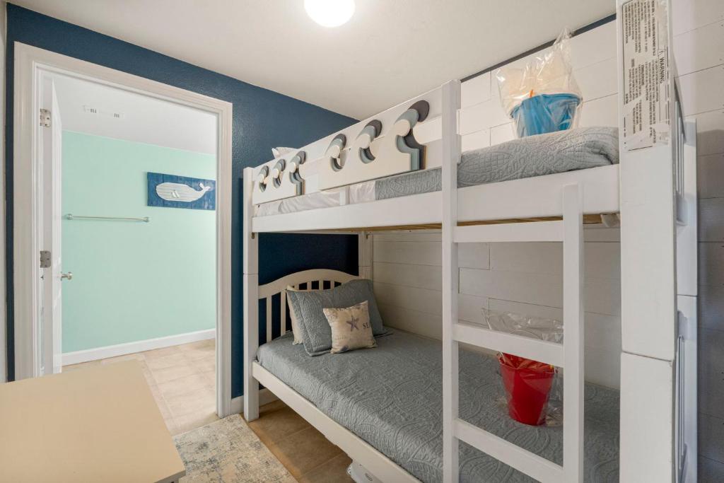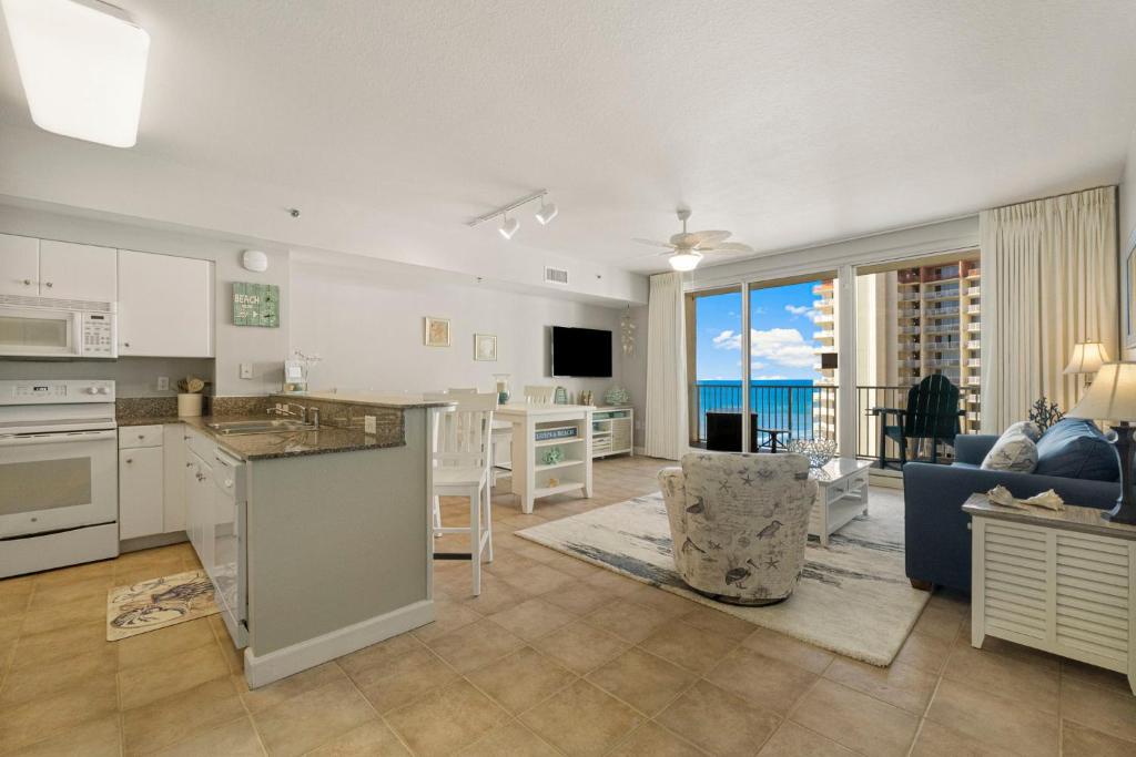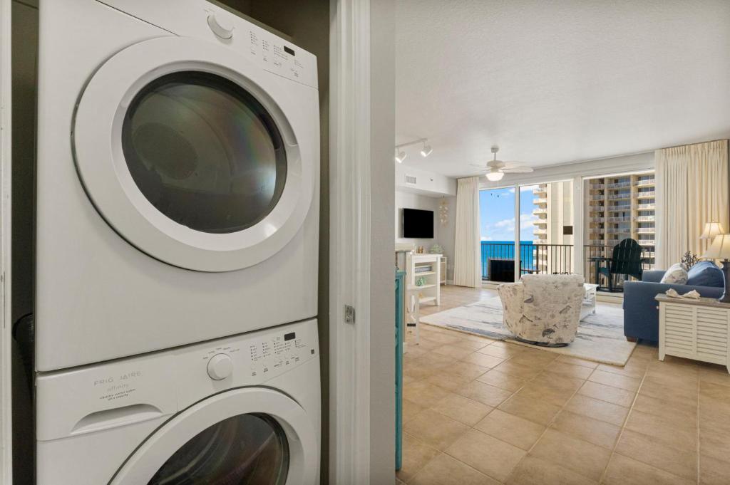 Shores of Panama 1525 has breathtaking views from this stunning 15th-floor 1-bedroom + bunk room, 2-bath condo—perfect for a small family vacation or a private getaway. The master bedroom features a comfortable king bed, while the bunk room offers a twin-over-twin bunk, plus a sleeper sofa in the living room—sleeping up to 6 guests with ease. Prepare your favorite meals in the fully equipped kitchen while taking in the incredible views or enjoy a casual bite at the eat-at bar. Step out onto the extra-large balcony to sip your favorite drink, watch the sunset, or simply unwind. The living room invites you to relax with a movie on the flat-screen TV, and a washer and dryer in the unit add extra convenience for your stay. Guests can enjoy puzzles, games, as well as beach toys and chairs, with availability subject to change. Just a short stroll away, the sandy beach awaits—perfect for soaking up the sun and making memories. Whether you’re here to relax, explore, or play, Shores of Panama 1525 is your ideal home-away-from-home.