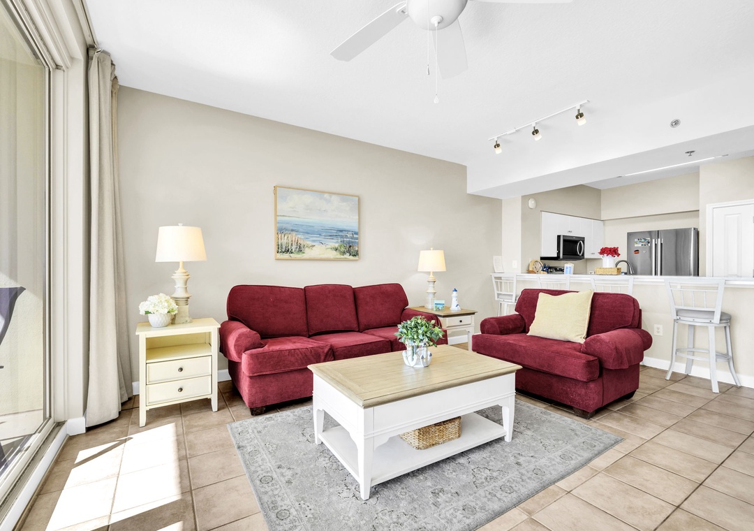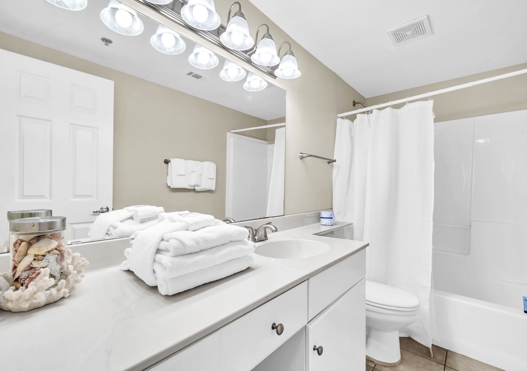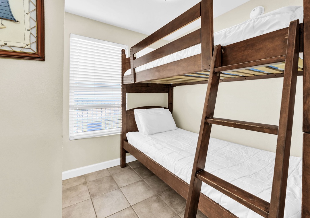 Treat yourself to a relaxing getaway in this beautiful 1-bedroom + bunk nook, 2-bath condo at the Shores of Panama 1711. Located on the 17th floor, this spacious retreat features a large private balcony with stunning views of the Gulf and the resort-style pool. The master bedroom includes a cozy queen bed and a private ensuite bathroom. A separate bunk nook with twin bunks and a queen sleeper sofa in the living room allows this unit to comfortably sleep up to 6 guests.