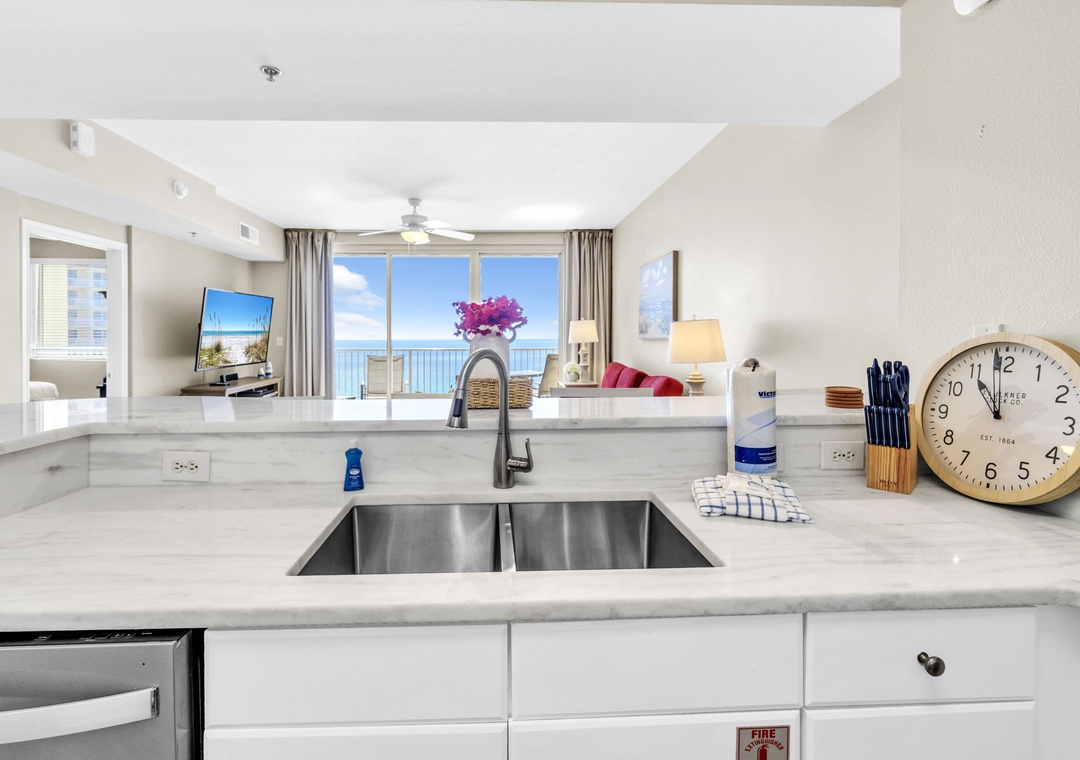 Start your mornings with breakfast on the balcony, soaking in the panoramic views of the sparkling water. The fully equipped kitchen has everything your group’s chef needs to prepare home-cooked meals. During your stay, enjoy all the incredible amenities the Shores of Panama Resort has to offer — from the lagoon-style pool and hot tubs to beach access, fitness center, and more. Whether you're planning a romantic escape or a family beach vacation, Shores of Panama 1711 is your perfect home away from home!