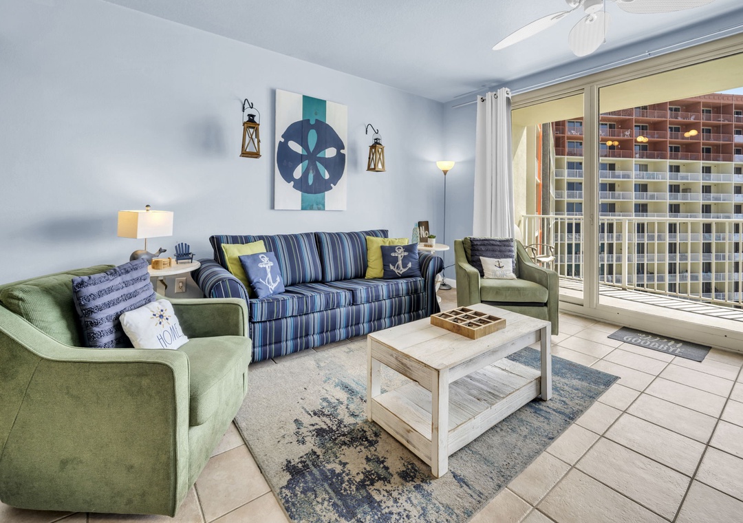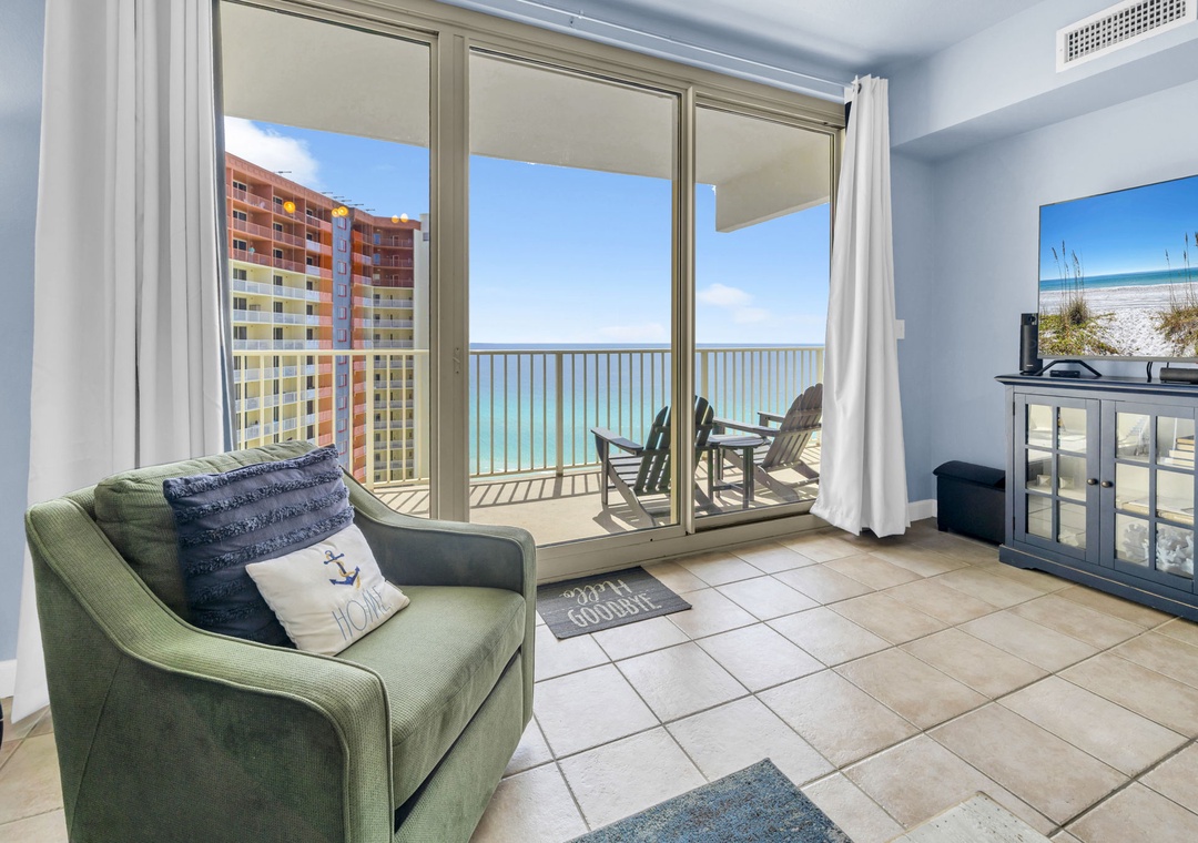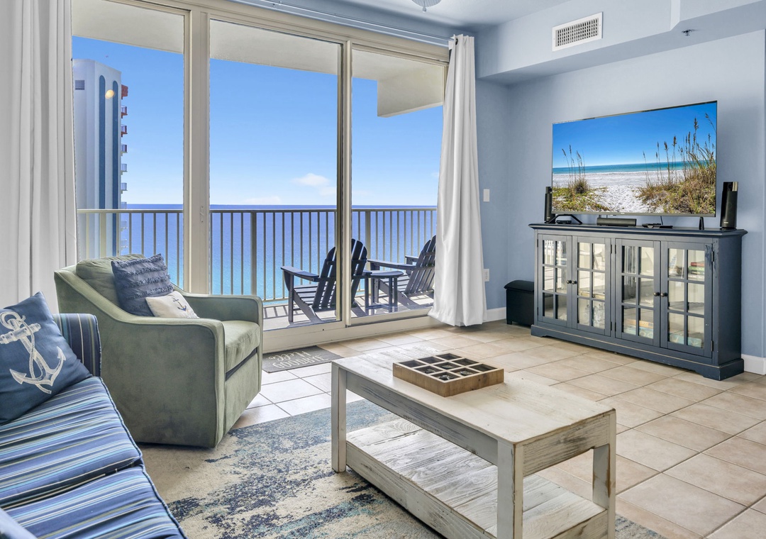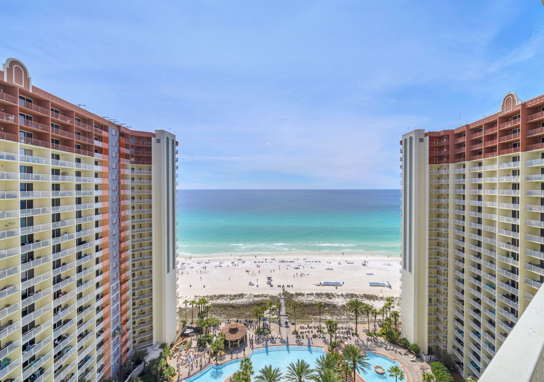Take in unobstructed Gulf and Pool Views from Shores of Panama 1816! This beautiful 2BR/2BA condo features a large balcony and a fully equipped kitchen with granite counters and water views. Recent updates include new flooring, fresh paint, new kitchen cabinetry, and bathroom vanities! The master bedroom offers a king bed, En suite bathroom, and Gulf Views out of the window. The guest bedroom has a full bed and there is a queen sleeper sofa in the living room. This unit sleeps up to 6 guests comfortably. Relax on your balcony with stunning lagoon pool and beach views or explore the extensive resort amenities at Shores of Panama. Enjoy the convenience of a private parking spot on the 7th floor right by the elevator in the parking deck. Find out why Shores of Panama 1816 is the perfect vacation destination!