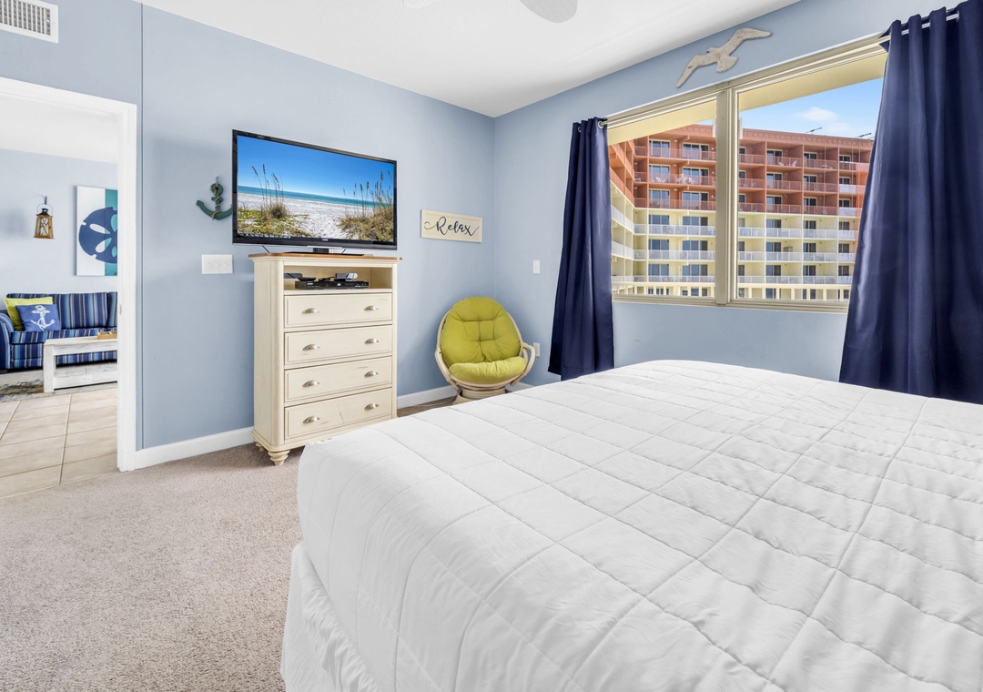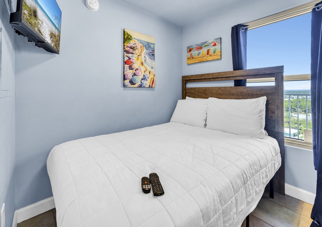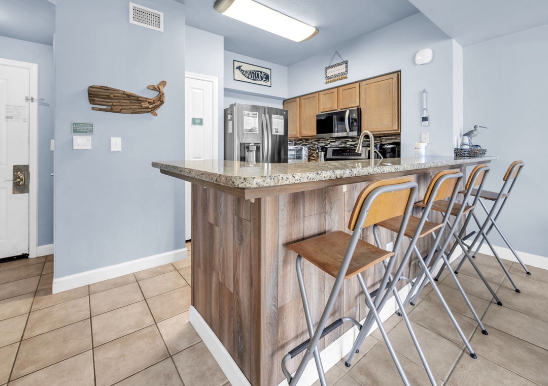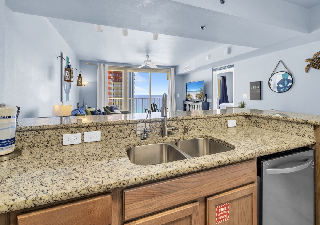 The room was very clean and had a perfect view of the pool and beach. I’d definitely stay in this room again…. If it was on a different floor. The only problem we had was the elevators. This resort has 22 floors and only 2 sets of elevators, totaling 4. during our stay only 3, sometimes 2 were working. So during peak hours it would take a lot of patience waiting to get on. Many times we had to wait a second or third time for our turn on the elevator. We waited so long after we first got there we actually walked the 18 flights of steps with 4 kids. I thought I was going to die in the hot stairwell lol. Checking in was a bit of a strain as well because on line it said our wrist bands would be in the room and they were not. I also read online that our wrist bands where included but they were not and I paid around 80 bucks for them. I also see on the fridge that the price was 50 for them so idk if that was out of date or I got ripped off and had to pay for something that was supposed to be cheaper and included. But the room itself was awesome. Very clean and well stocked of essentials. They could use some updated cookware but we managed. Over all I’d stay again but maybe on a floor closer to the parking garage, a lower level.- Reviewed On: 7/25/2023