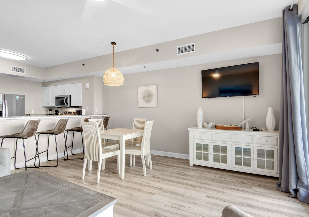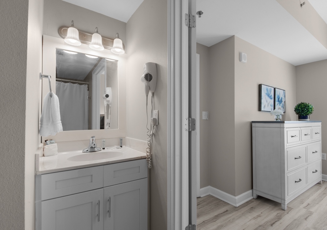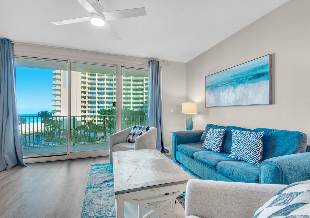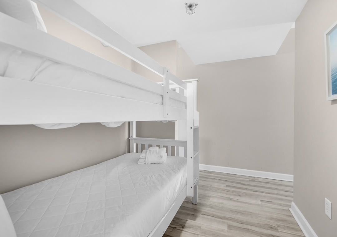 Escape to the sun-soaked shores of Panama City Beach and stay at Shores of Panama 426, the perfect retreat for beach lovers! This charming 1-bedroom + bunk room, 2-bath condo offers everything you need for a relaxing and fun-filled vacation. With 9 ft ceilings and a spacious balcony, you'll love starting your day with a cup of coffee while taking in the sights and sounds of the Gulf's gentle waves. The soothing coastal decor inside, with its soft neutrals and pops of ocean blues, creates the ideal backdrop for unwinding after a day at the beach. The open-concept design keeps everyone connected, whether you're cooking in the fully equipped kitchen, dining at the table or bar, or kicking back to watch a movie on the flat-screen TV. Sleep peacefully in the king bed with a private en suite, while the kids enjoy their own space with twin-over-twin bunks in the cozy nook. There's also a sleeper sofa in the living room, comfortably accommodating up to 6 guests. Shores of Panama is a tropical oasis, featuring North Florida's largest lagoon-style pool, a beachside hot tub, indoor pool, and poolside grill and bar. With easy access to the sandy shores, your days will be filled with sun, surf, and smiles at Shores of Panama 426!