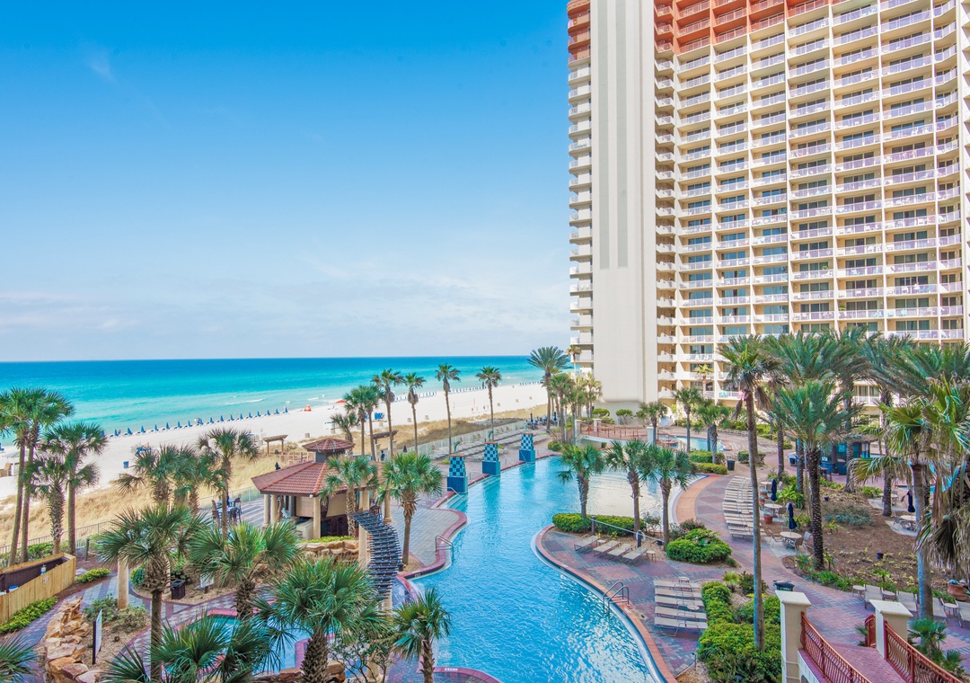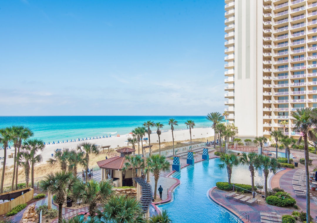 * Spacious, Private Balcony with amazing views of the Gulf and largest lagoon Pool in Panama City beach