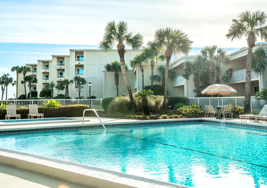 A beautifully landscaped eight-acre oasis is the hidden jewel found only at Silver Dunes Condominiums. Located at the emerald waters of Destin in the Panhandle of Florida, you'll love beginning your day by watching the sunrise on the private beach onsite. This low-density condominium is a family-friendly complex with activities for all family members to enjoy including movie nights in the courtyard and other activities. Enjoy the seasonally heated community pool, pickleball, tennis, and basketball courts, shuffleboard, coin-operated laundry services onsite, fitness center, and more.