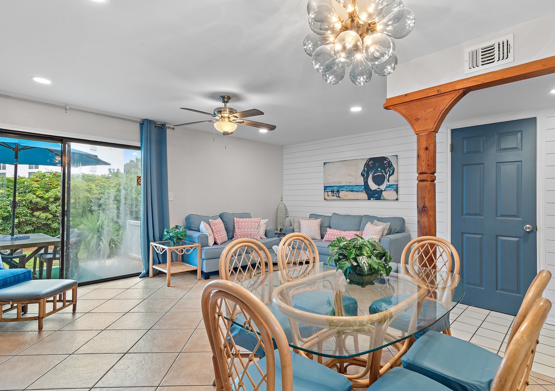 This pet-friendly 2-story townhouse features 3 bedrooms/2.5 baths, and offers a spacious living room and a fully stocked kitchen for all of your cooking needs. You will also find private beach access, a backyard with dining and a storage unit with beach toys and chairs for fun in the sun 🌞. There is In-unit laundry with a washer and dryer to make your stay easier. There is plenty of room for 10 guests in this spacious home with 3 bedrooms upstairs and a sleeper sofa downstairs.