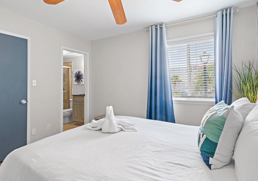 •Master: queen bed (sleeps 2) and private ensuite bath with walk in shower