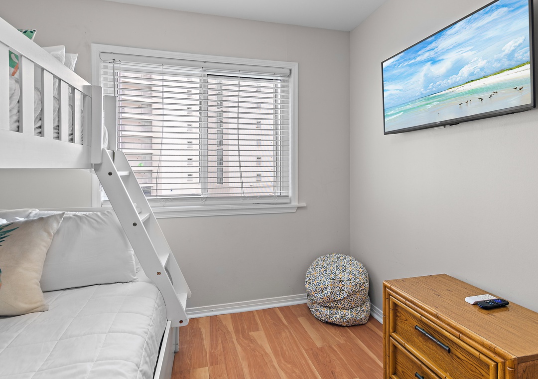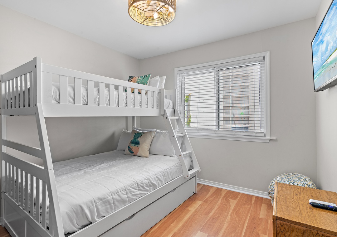 •Secondary: twin-over-full bunk bed and twin trundle (sleeps 4)