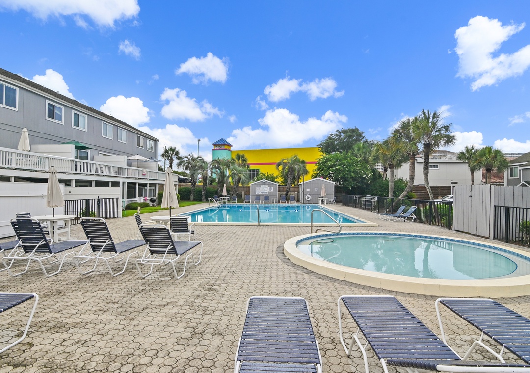 SouthBay by the Gulf is a gated, low-density townhome community. This complex is steps to two full-sized pools with kiddie pools, shuffleboard courts, lighted tennis courts, beachside volleyball courts, and a 5 acres freshwater lake. Every townhome features a designated parking spot right in front of your door making it easy to transfer your things in-no long walks through huge parking lots searching for your car. Come experience why guests return to Southbay by the Gulf year after year!