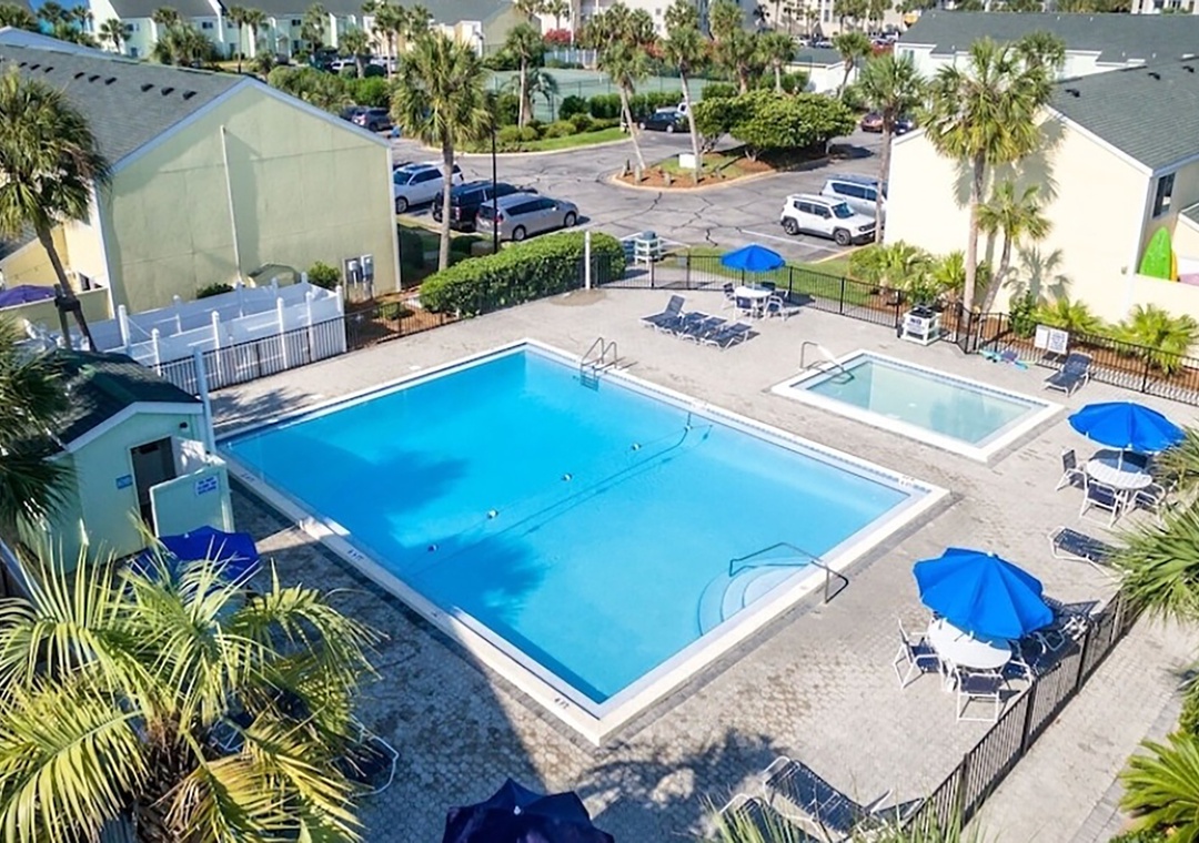 SouthBay by the Gulf is a gated, low-density townhome community. This complex is steps to two full-sized pools with kiddie pools, shuffleboard courts, lighted tennis courts, beachside volleyball courts, and a 5 acres freshwater lake. Every townhome features a designated parking spot right in front of your door making it easy to transfer your things in-no long walks through huge parking lots searching for your car. Come experience why guests return to SouthBay by the Gulf year after year!