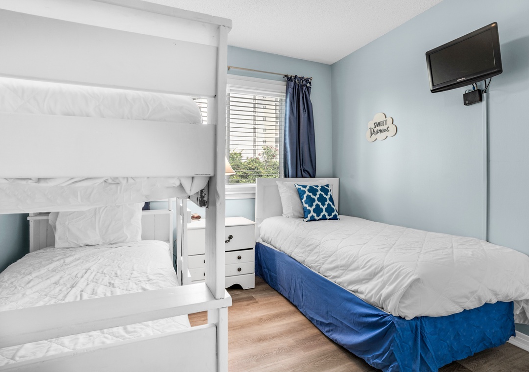 Guest Bedroom 2: Twin-over-twin Bunk Bed + Twin Bed