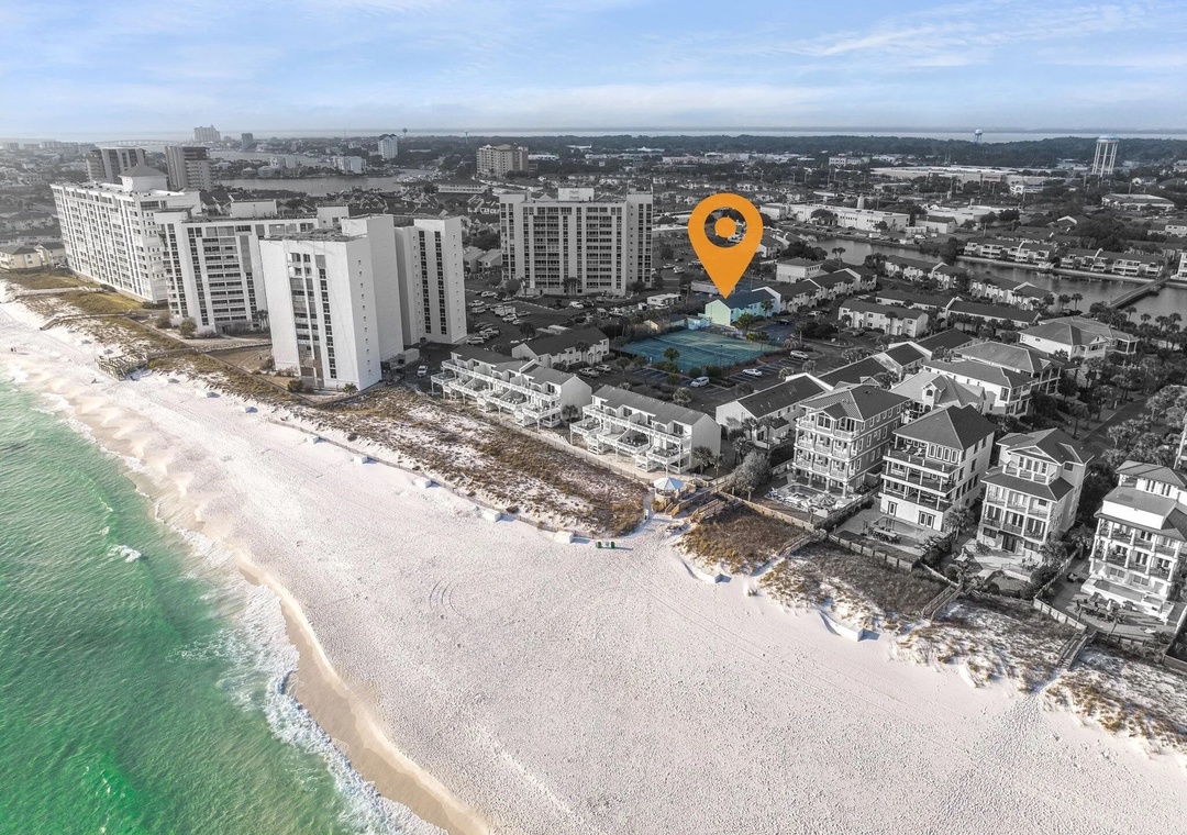 This is across the street from Big Kahuna's Waterpark, full of great splashing fun for the kids. And it is within walking distance to grocery shopping and some of Destin's best dining: the Pancakery, Crackings, Que Pasa, and Nothing Bundt Cakes!