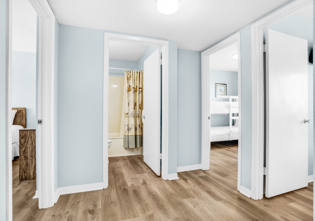 This townhome has all new kitchen items, flooring, etc. nice place. The room with the three beds is for little kids. Three full size adults would be uncomfortable sleeping in the little beds but other than that it was great. Right across the parking lot from the beach. Would def recommend this place.- Reviewed On: 8/13/2023
