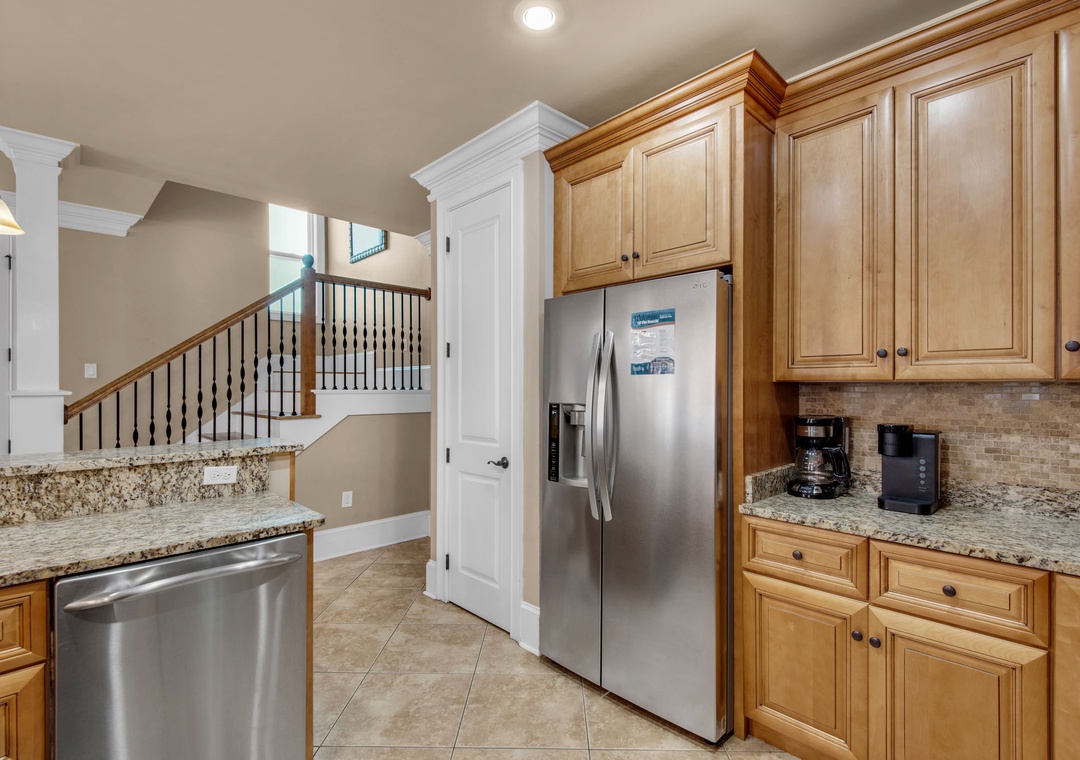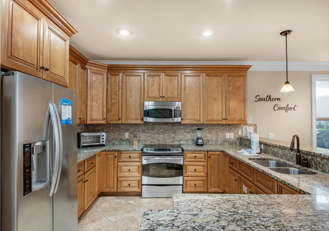 We loved the amenities. There was grill, beach chairs, a caddy to take items to the beach, family games, large washer and dryer, fully equipped kitchen with Keurig coffee maker, waffle maker, toaster, convection oven, dishwasher, etc. and etc.