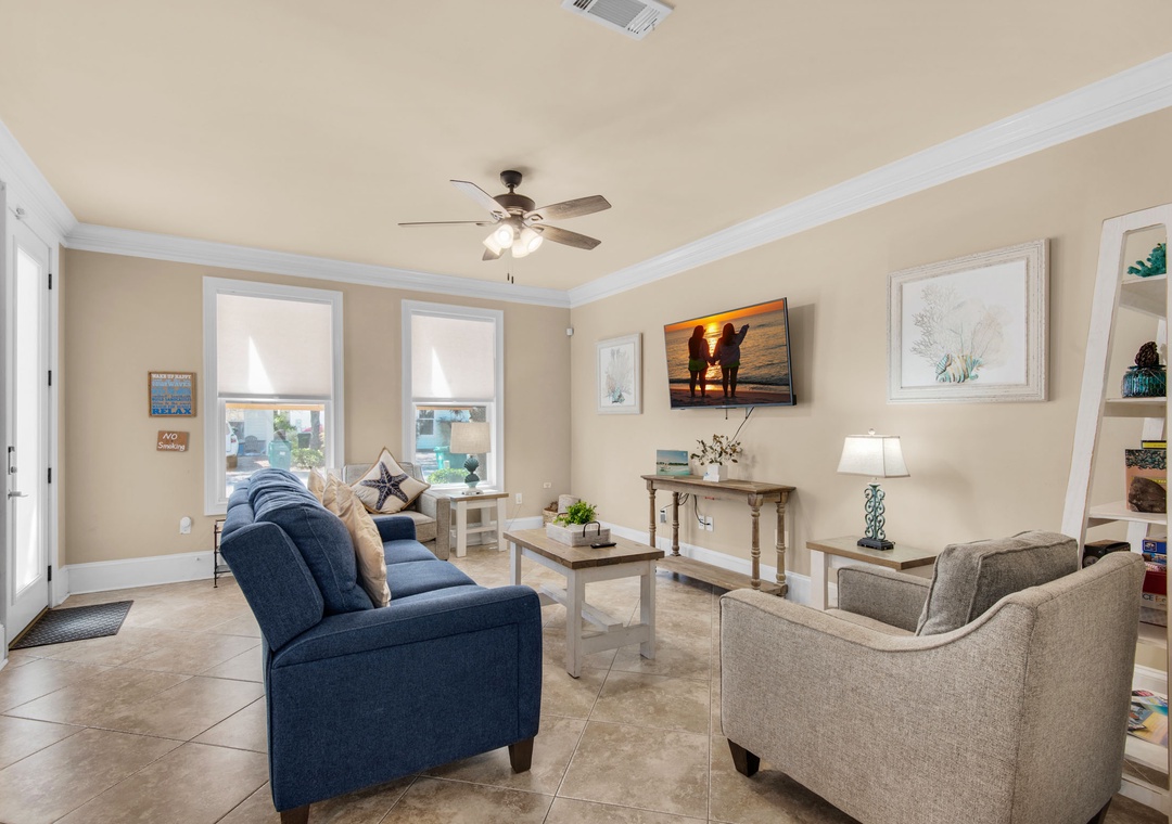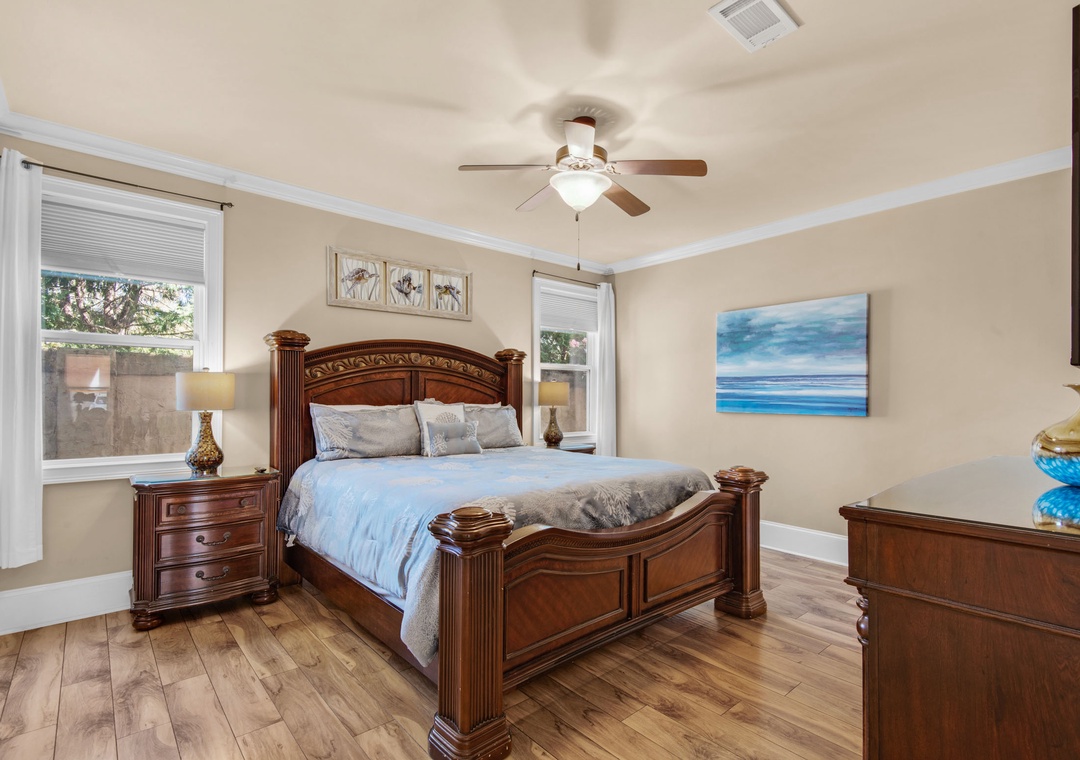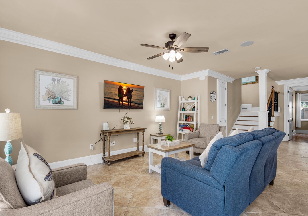 Villages of Crystal Beach is an exclusive, gated community only a few blocks from the beautiful blue waters and white sandy beaches of Destin. You can make the walk on foot or hop on the free seasonal trolley service (Memorial Day through Labor Day) they will even pick you up at the house and drop you off right at the beach! The pool area at Villages of Crystal Beach is a vacation must! The lagoon-style zero-entry pool is 30,000 square feet of gorgeous, sparkling clear water. There is a spa, tropical landscaping, and plenty of seating areas. It also has surround sound, a flat-screen TV, and a grilling area to help you relax and unwind.