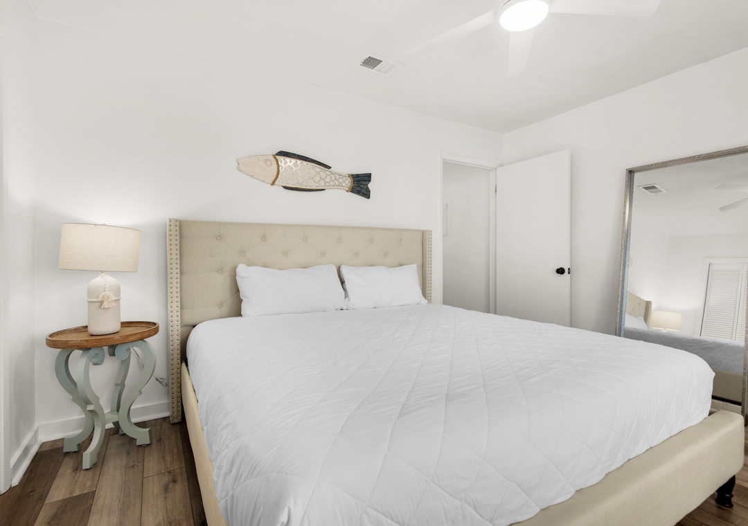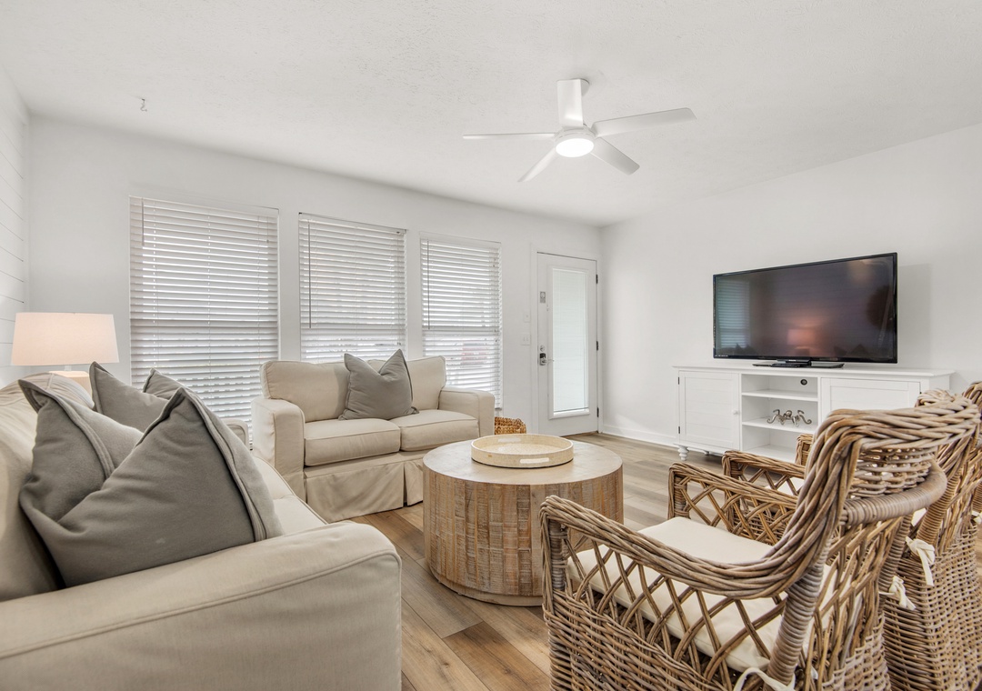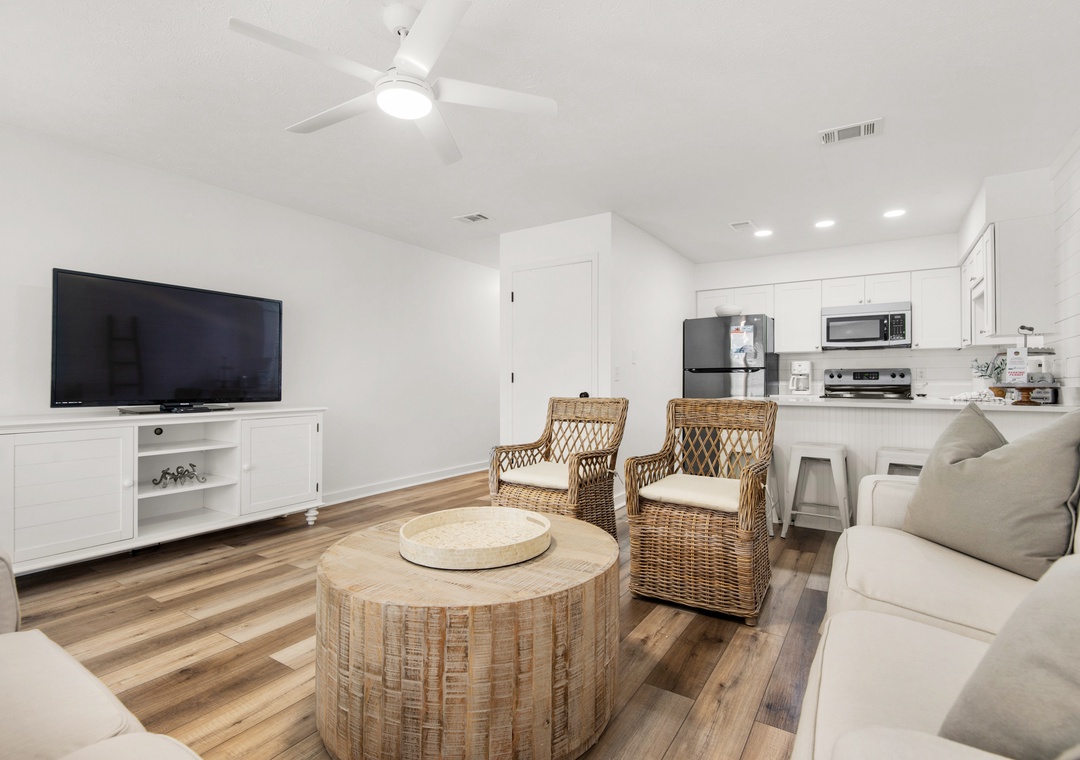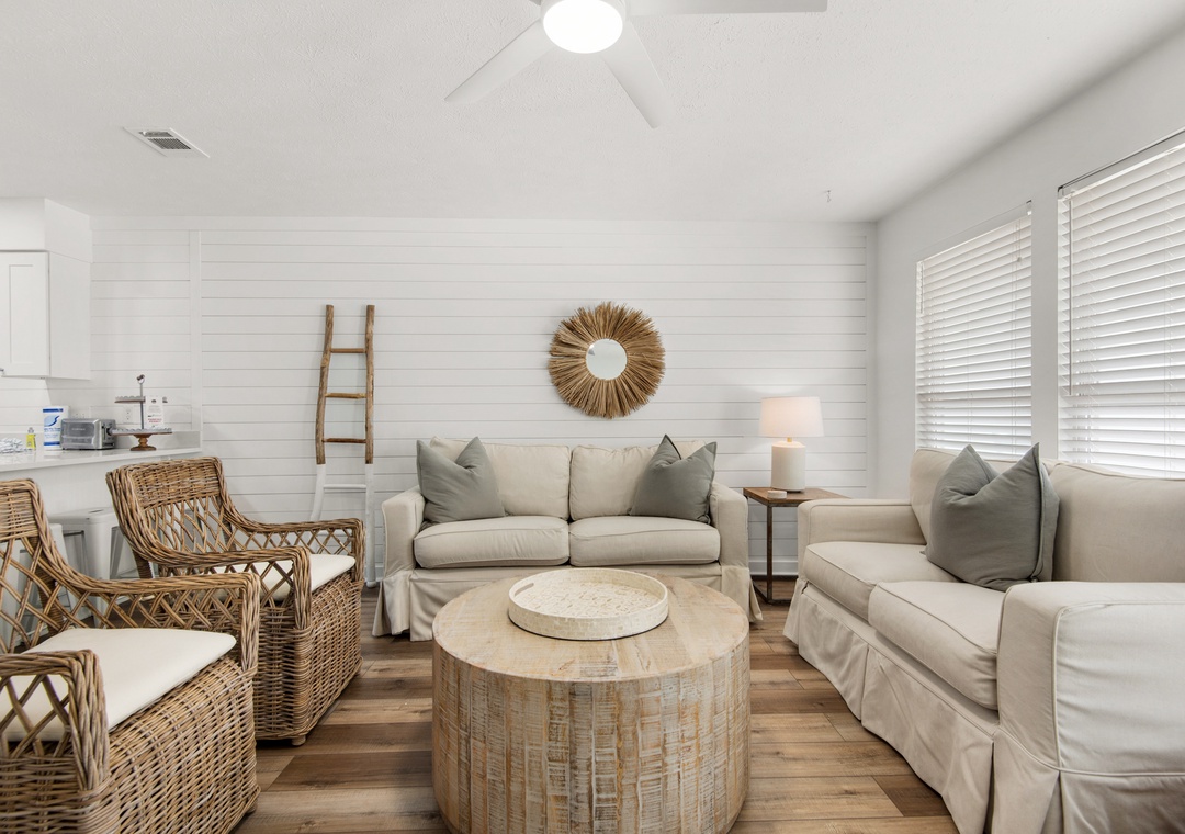 Southwind A-3 - Fleur De Sea is a lovely 1BR/1BA ground-floor condo located just steps from the shores of Panama City Beach. Offering a quick stroll to the beach, Southwind A-3 offers all you need for a relaxing trip! This condo has been recently renovated with new paint and shiplap walls! The master bedroom has a king-sized bed, the hallway offers a new twin-over-twin bunk bed, and there is a sleeper sofa in the living room, allowing this lovely condo to sleep up to 6 guests comfortably. Come and see why families come back to Southwind A-3 - Fleur De Sea year after year!