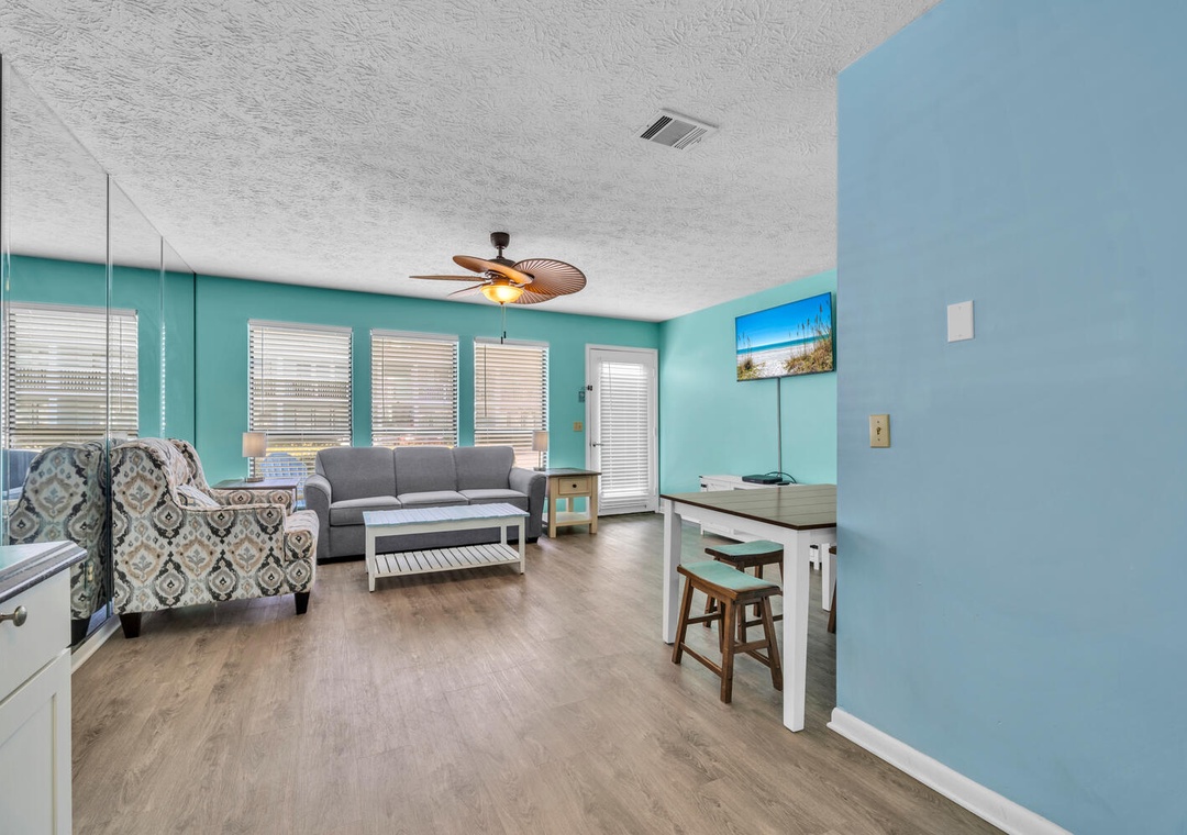 Southwind C-3 is a 1BR/1BA ground-floor condo located just steps from the shores of Panama City Beach. Just a quick stroll to the beach, Southwind C-3 offers all you need for a relaxing trip! The master bedroom has a queen-sized bed, the hallway offers a twin-over-twin bunk bed, and there is a sleeper sofa in the living room, allowing this lovely condo to sleep up to 6 guests comfortably. Prepare anything from your morning coffee to a full-course dinner in the well-equipped kitchen. You can enjoy your dinner on your private porch while watching the beautiful sunsets. Come and see why families come back to Southwind C-3 year after year!