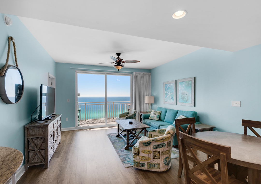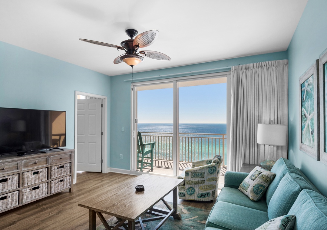 Candace, we appreciate you taking the time to provide us with some feedback regarding your family's stay in this very spacious two-bed/two-bath beachfront unit in Panama City Beach. We are very happy to know that you thought this was a very nice place to stay overall with a beautiful view. We apologize for the issue regarding the television. Thank you for choosing Real Joy. Please visit again soon.Real Joy staff