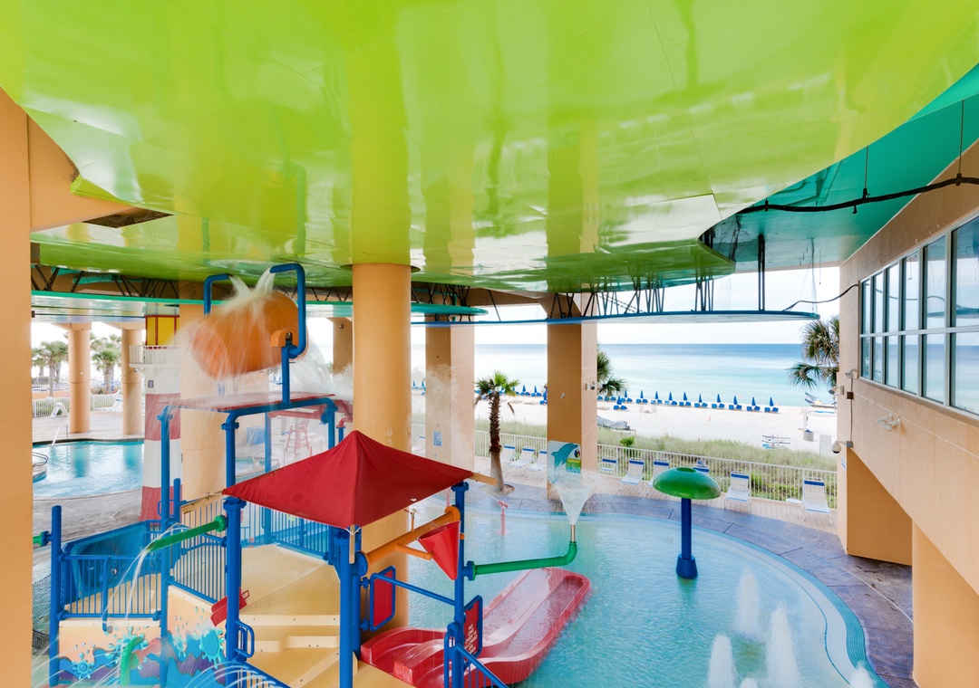 Splash Resort in Panama City Beach is a fun-filled, Gulf-front condominium that is perfect for families. Splash has 2 towers with 21 floors, decked out in bright colors and splashy designs! There’s a seasonally heated covered pool, a seasonally heated outdoor pool, a hot tub, and a lazy river pool! You’ll also find a kid’s mini-water park complete with water slides, water cannons, and bucketloads of even more water! There’s even a toddler-friendly splash pad. Enjoy the convenience of Alvin's Island Beach and Convenience Store onsite and the covered parking garage. There’s also a fitness room overlooking the Gulf, and community BBQ grills. From the dive-in theater to the poolside bar and grill (both are seasonal), Splash has everything for your fun-filled beach vacation!
